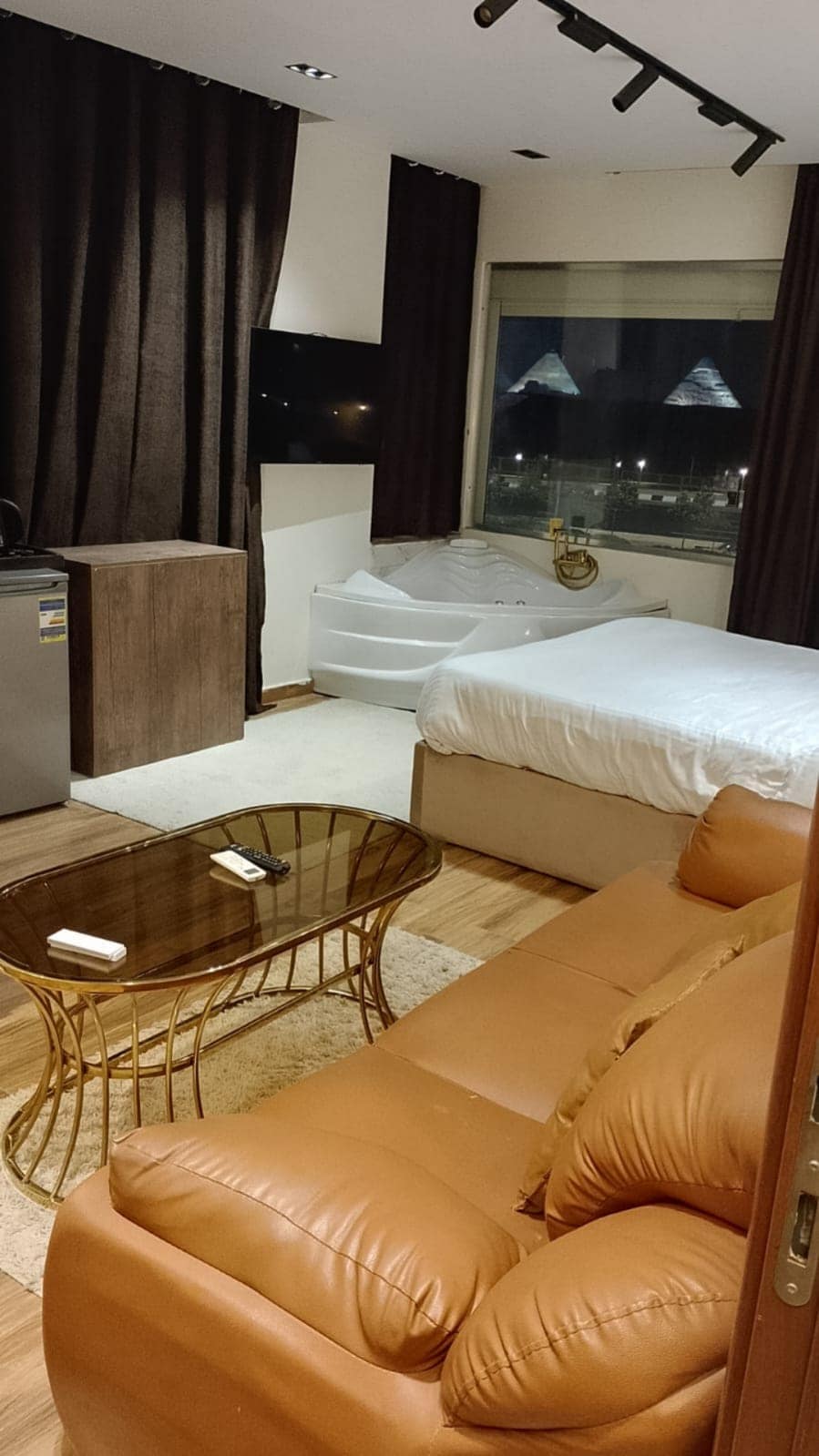 Zien Jacuzzi – Pyramids view Panorama Apartment Experience Cairo from above at Zien View. This stylish apartment features two comfortable bedrooms, a bright reception, a fully equipped kitchen, and a modern bathroom. Enjoy breathtaking views of all three Pyramids from the apartment and the rooftop perfect for sunrise, sunset, and unforgettable memories.