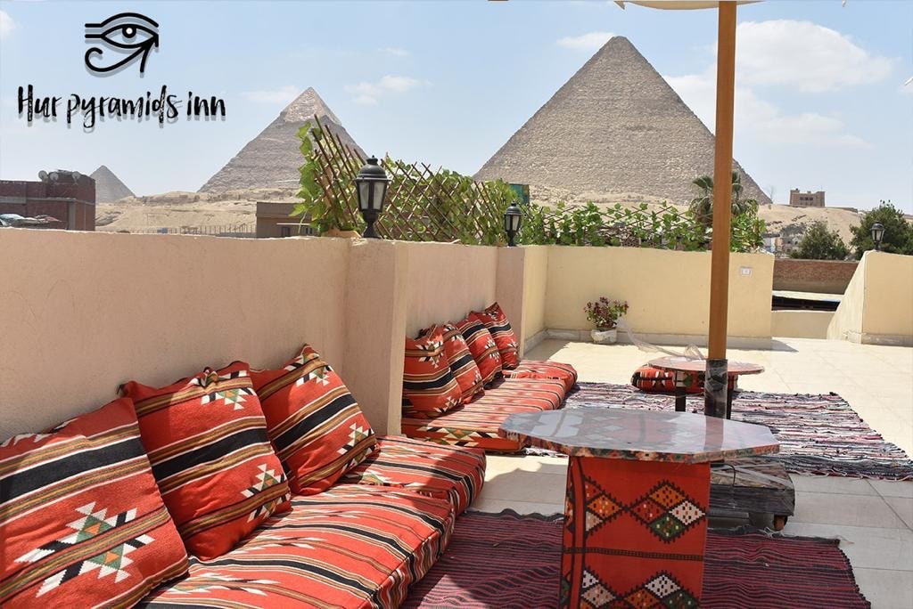 The room is about 30 square meters, everthing in the room is new and with high quality, and the general atmosphere in the room gives you a feeling of comfort, and the room has a private toilet and it's own heritage with pyramids view where ( 20 square meters), and there is free internet service in the room and a small refrigerator. There is also a great heritage with pyramids view where can eat food and drinks, enjoy the sun during looking at the pyramids
