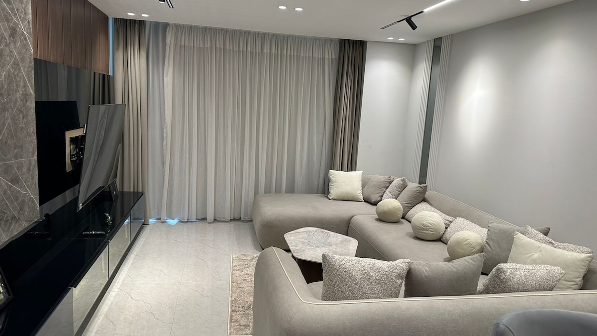 Reconnect with loved ones in this family-friendly place. It is a luxurious place overlooking the pyramids, the face of the Sphinx and the Grand Egyptian Museum. The place is distinguished by the services available around it, such as Orange Market, a pharmacy, a grocery store, a bakery, and a restaurant. It is distinguished by being close to the pyramids, where you can walk to reach it. This place can accommodate a family of 6.