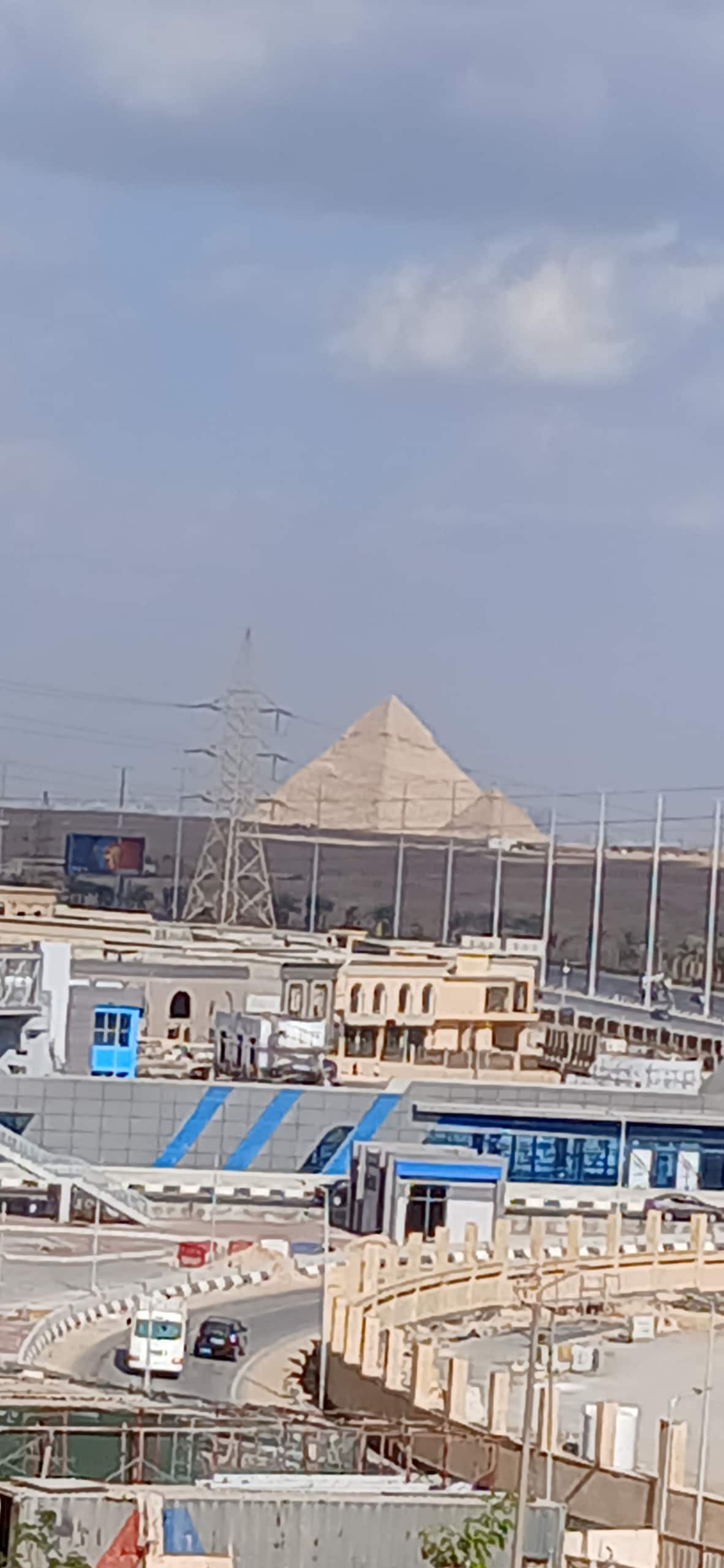 The flat is next to the great pyramids and the new Egyptian Museum, and it has a distinctive view of the desert back of the pyramids, the Alexandria Desert Road, and the sixth city road of October The fourth floor consisting of two rooms with 3 beds, one of whom is double, and it has natural gas, the Internet, TV, washing machine, bouzaka, oven, electrical oven, katil, mixer, fridge, and heater of gas A gas heater and does not pay water close to the archaeological sites with calm and safety