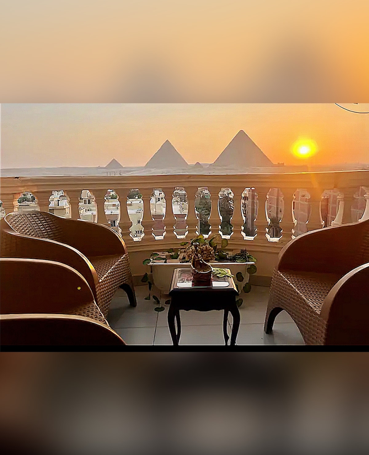 This apartment is located at only 5 min by walk from the Sphinx and Pyramids entrance gate with view of the pyramids from balcony , are in a quiet location close to many restaurants, shops, fruit shops, mall shop (local and touristic), mini markets, and pharmacies, Apartment is air conditioned, unlimited fast internet , Full accessories clean sheets, fresh towels & quite atmosphere. Its probably the best place to enjoy pyramids view