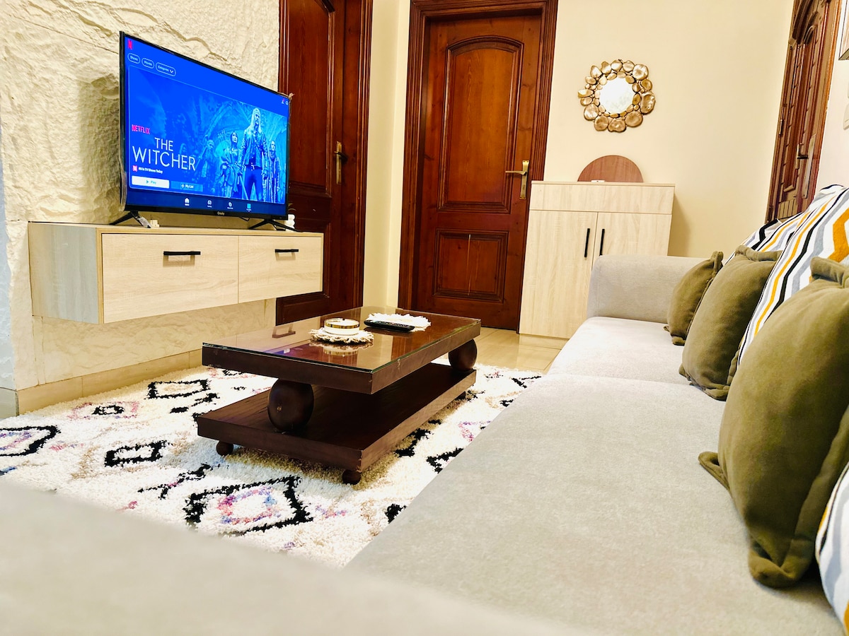Experience the ultimate in modern comfort in our new 2-bedroom and 2-bathroom apartment suitable for 4 persons,Every inch of this stylish space is new and designed to make your stay unforgettable Our apartment is perfect for families or a business trip. You’ll find all the amenities you need, including a fully equipped kitchen, a comfortable living area Located in a prime compund, you’re just a short way from restaurants,shops in tagamoa and naser city Book now,,We can’t wait to host you!