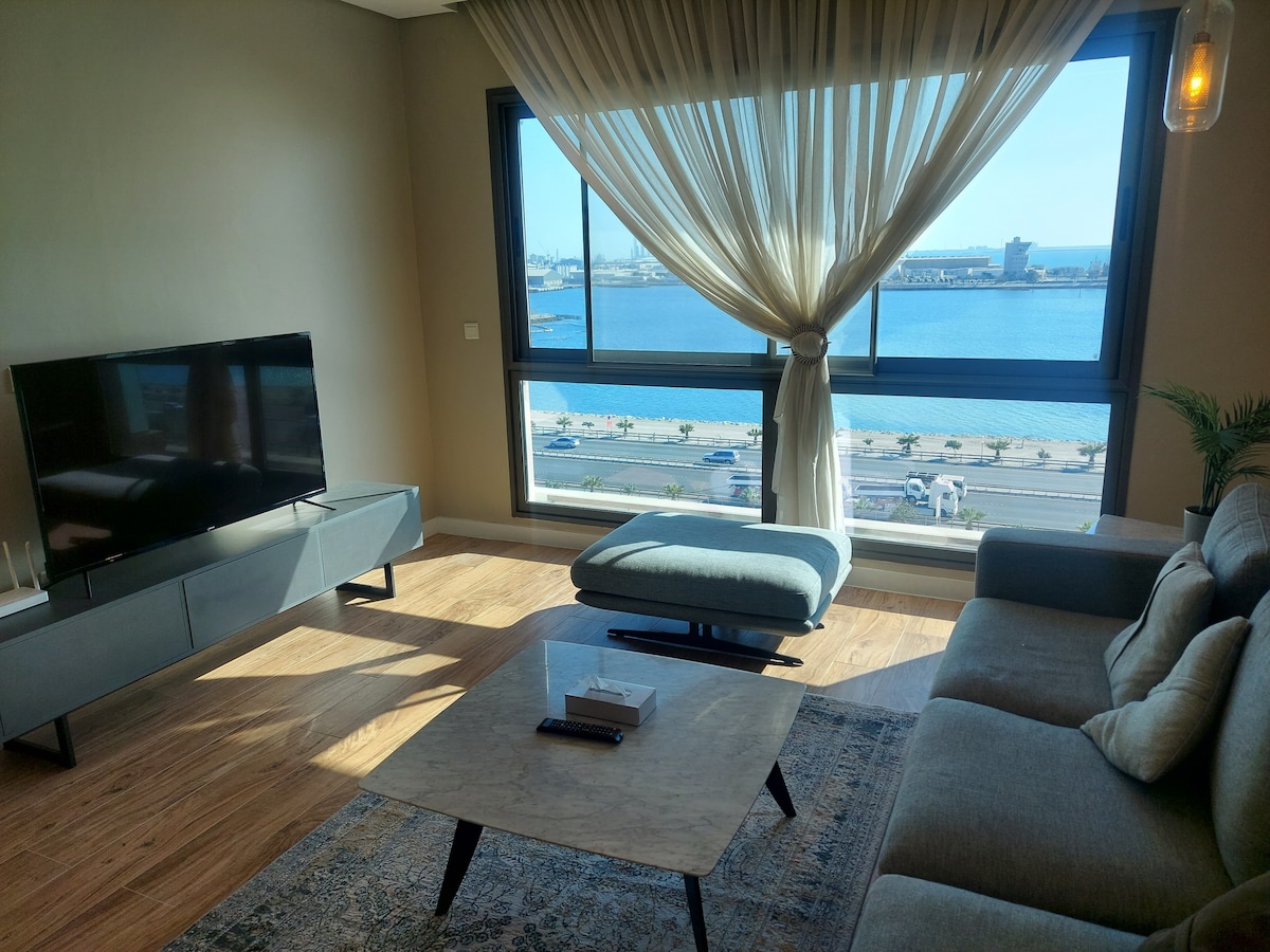 Enjoy modern living with stylish furnishings and city/sea views and private Balcony. The flat location near shops, variety of restaurants, transport & nightlife The flat features - All long stay equipment (coffee machine, toaster, kettle, ironing set, hair drier, vacuum machine) - Fully equipped kitchen with all basics - All bathroom needs - Smart TV and high-speed Wi-Fi Full access to all amenities - Workspace - Swimming pool - Fitness center - Sauna - Theater - Squash court - 24/7 security
