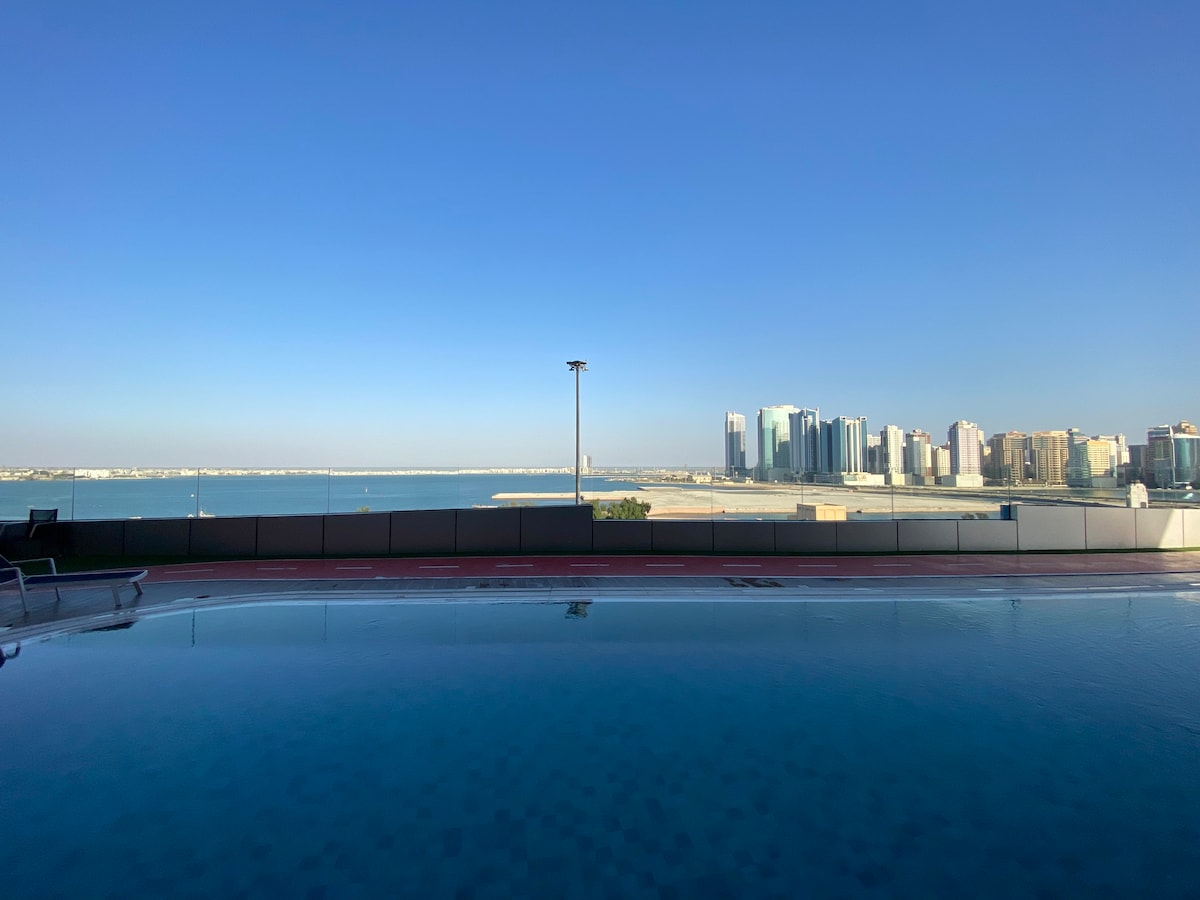 Enjoy modern living with stylish furnishings and city/sea views and private Balcony. The flat location near shops, variety of restaurants, transport & nightlife The flat features - All long stay equipment (coffee machine, toaster, kettle, ironing set, hair drier, vacuum machine) - Fully equipped kitchen with all basics - All bathroom needs - Smart TV and high-speed Wi-Fi Full access to all amenities - Workspace - Swimming pool - Fitness center - Sauna - Theater - Squash court - 24/7 security