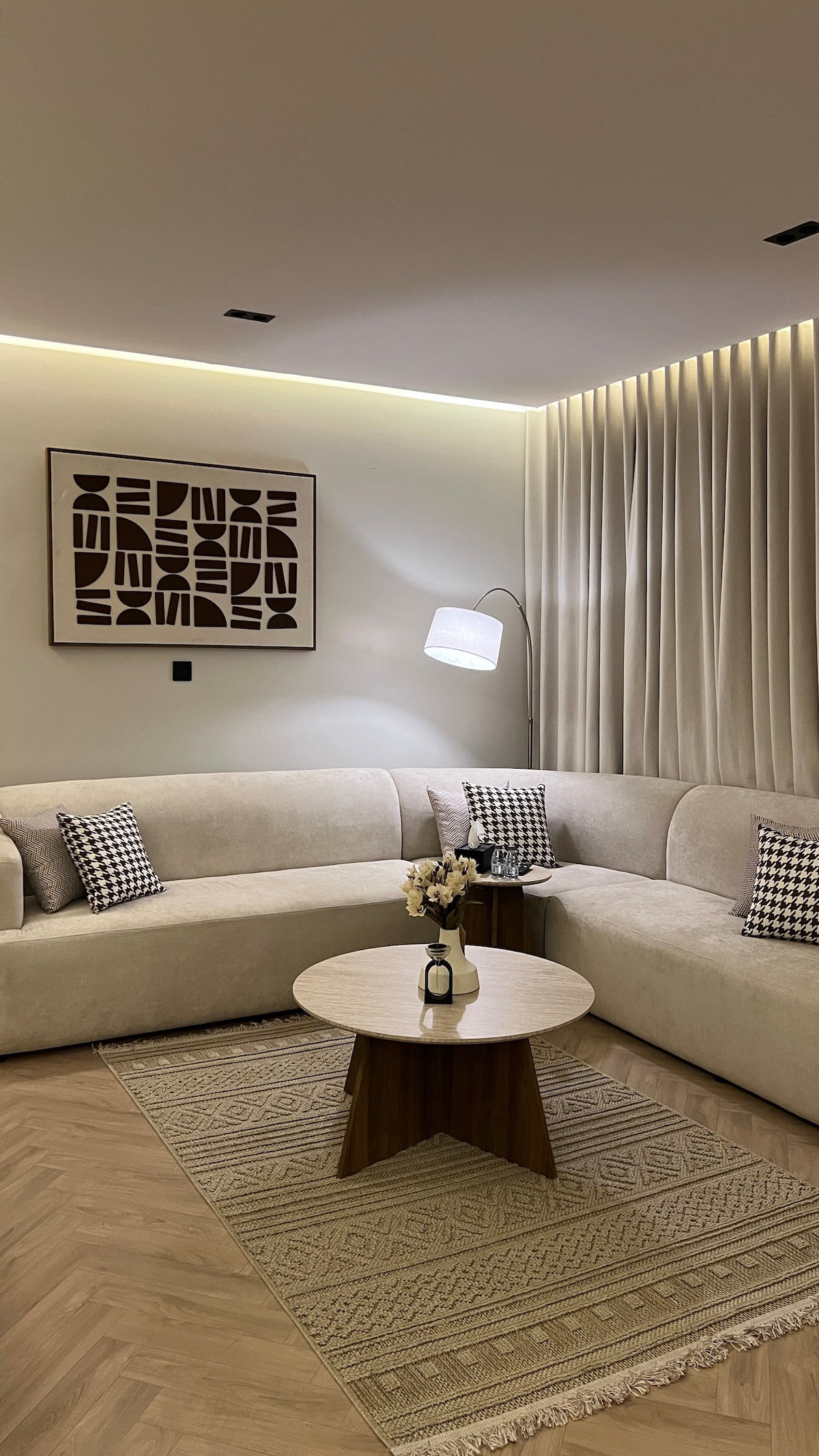 رقم تصريح وزارة السياحة: 50037586. استمتع مع كامل العائلة في هذا المسكن الأنيق. شقة فخمه من حيث فخامة ونظافة الاثاث والمكان والذوق الراقي في التصميم وتتميز بموقعها وهدوء المنطقة وجودة المنتجات الموجودة ويمتاز الموقع بالقرب من جميع الخدمات