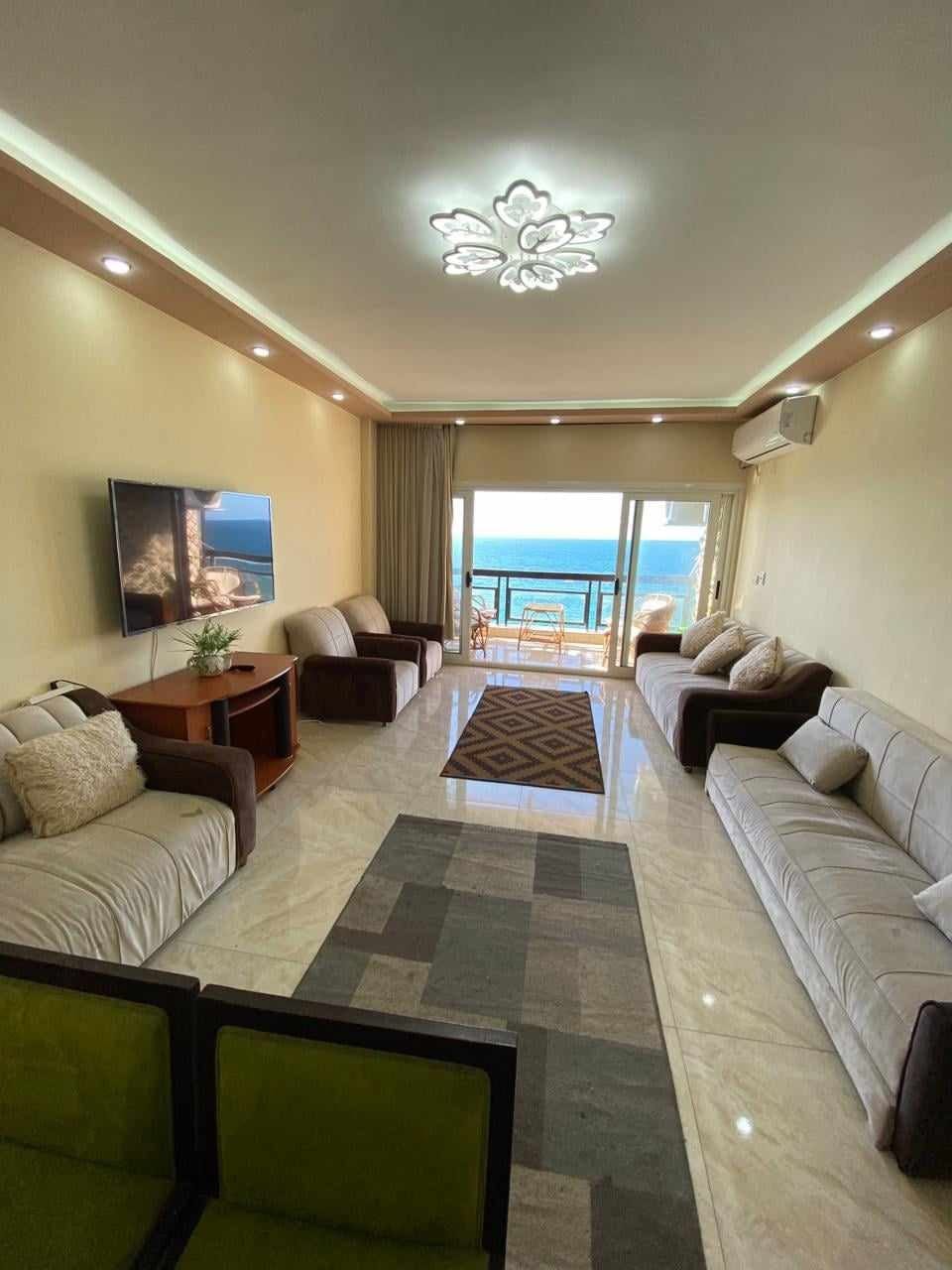 Your Luxurious 18th-Floor Mediterranean Getaway in Alexandria! 🌊🏖️ Imagine waking up to panoramic sea views from every corner of your apartment – even from your bed! Designed to maximize your sea experience, this spacious apartment is perfect for families. 3 Air condition bedrooms, each with two 120 cm beds. dining, Reception and living room offers breathtaking sea views to the west, North and East, perfect for enjoying the fresh, cool breeze, and ideal for soaking in the warm sun.