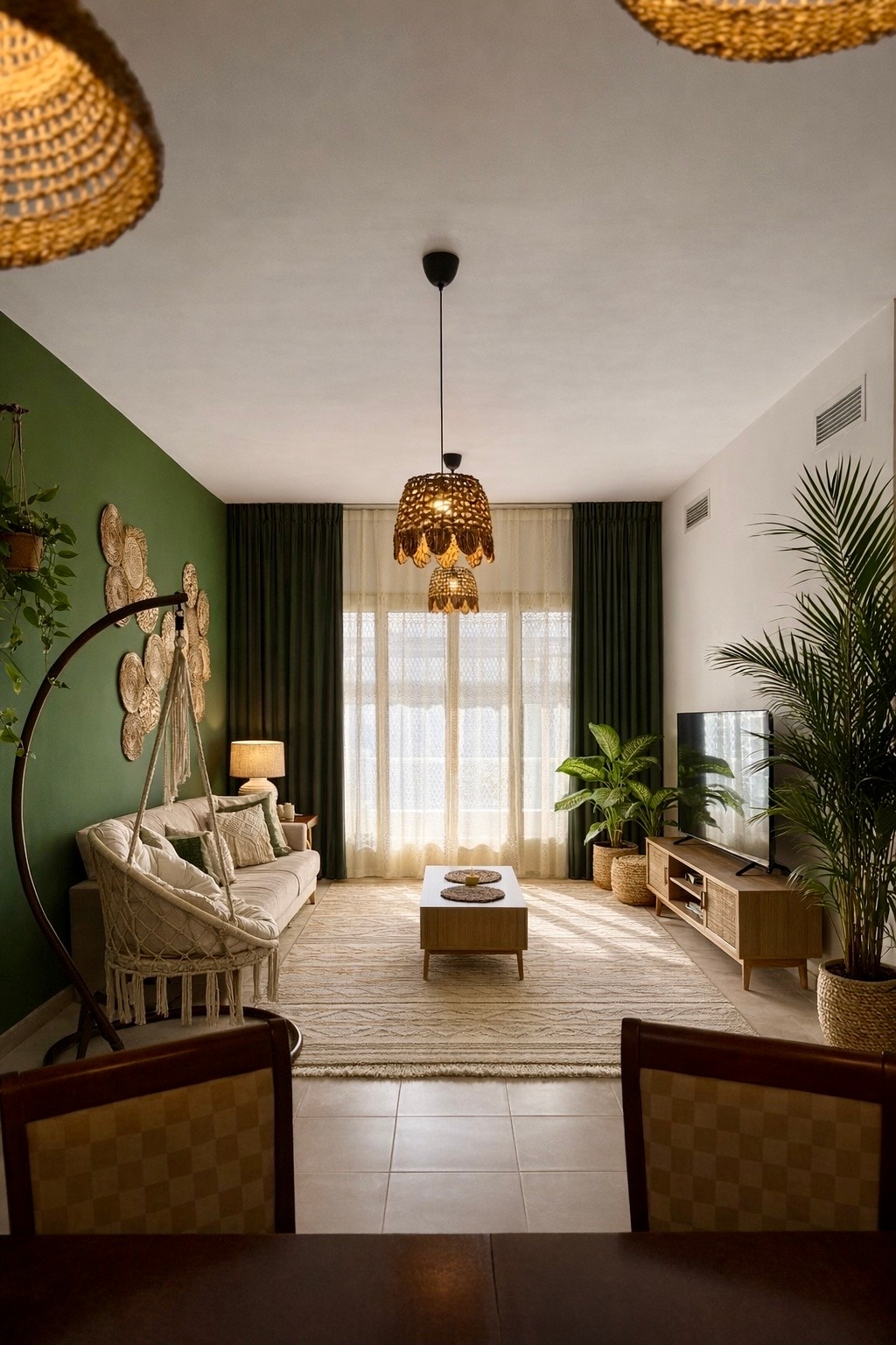 A boho home is warm, relaxed, and full of personality. It blends earthy tones, natural materials like wood and rattan, and soft textiles such as linen, rugs, and cushions. Plants, handmade decor, and layered textures create a cozy, lived-in feel. The style is eclectic, creative, and inspired by nature, focusing on comfort and individuality rather than perfection. 1 minute by foot from al Hamra mall