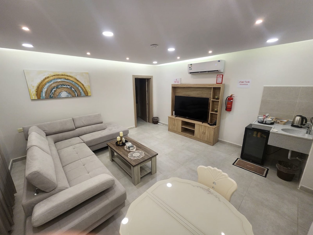 استمتع مع عائلتك في هذا المسكن الأنيق. خصوصية تامة ودخول سريع غرفة نوم وصالة ودورة مياه