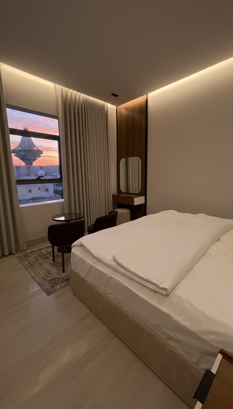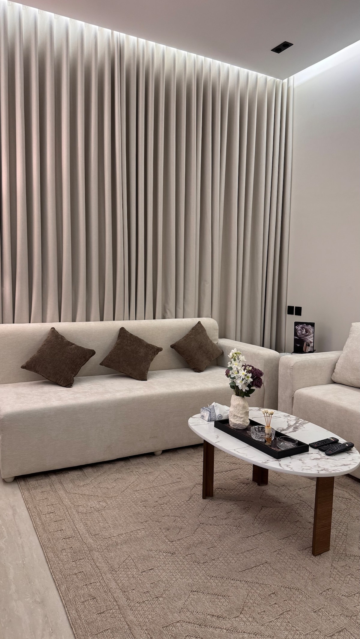 شقة مودرن هادئه بدخول ذكي بتصميم راقي في موقع مميز قريبة من برج الخرج وجميع الخدمات