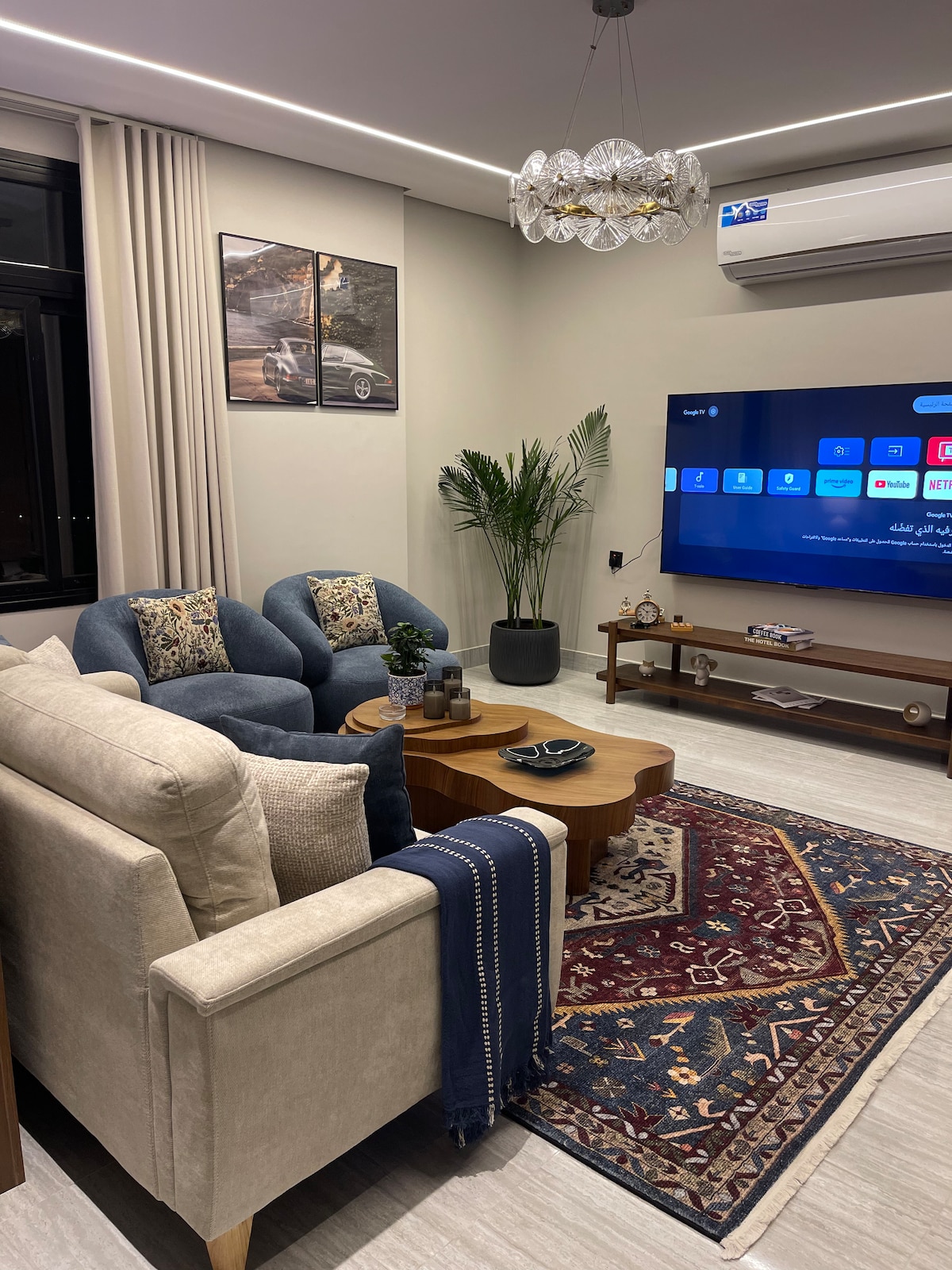 نوفر لك إقامة فريدة وراقية يتم فيها توفير جميع وسائل الراحة التي تستحقها، ونقوم هنا بتوفير وسائل الترفية من اشتراكات Netflix وShahid ، كما تحصل هنا على الخصوصية التامة وتسجيل الدخول الذاتي، في موقع مميز وقريب من جميع الاماكن السياحية والخدمية.