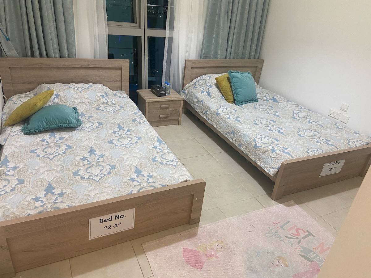 Fully furnished 2 bedrooms apartment with 3 bathrooms, 2 beach view balcony , living room and closed kitchen . All rooms have beautiful beach view facing to moon tower . Basement parking available - Walking distance to Lusail night market and close to Vendome Mall. Gym, Sona and Swimming pool facilities available . Free Wifi .