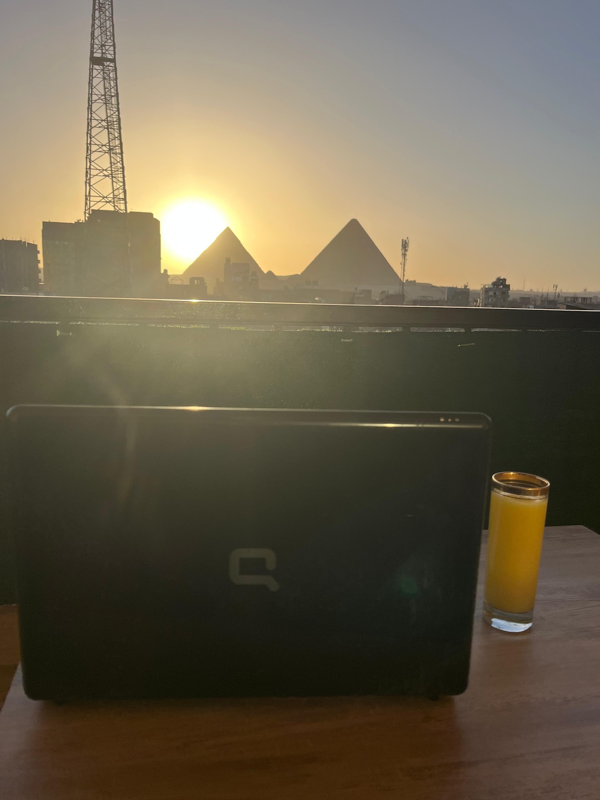 Welcome to our charming 1-bedroom in Giza, where you can enjoy spectacular views of the Great Pyramids right from your private balcony. Featuring a cozy bed and an attached bathroom, this space is perfect for relaxation after a day of exploration. Located just a 5-minute drive from the Giza Pyramids and the Grand Egyptian Museum, our apartment is also within walking distance to delightful restaurants, cafes, and supermarkets. Enjoy a complimentary breakfast on our rooftop cafe.