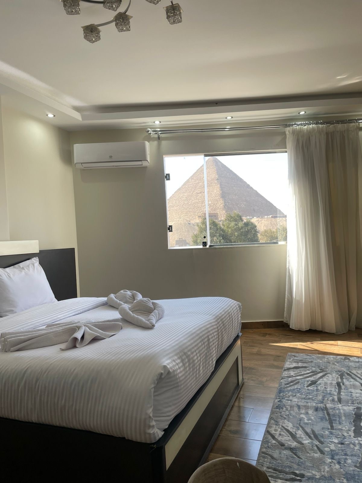 Thank you for visiting Pyramids View Apartament. Our apartment is a special place to unwind and enjoy the magnificent and magical view of the Giza Pyramids. The Pyramids are only a 5-minute walk away from our apartment. Please inquire about our excursions and private tours. We make them especially for you. We can assist you in whatever you require. We do our best to make your experiment so perfect that your happiness and safety are our top priorities.