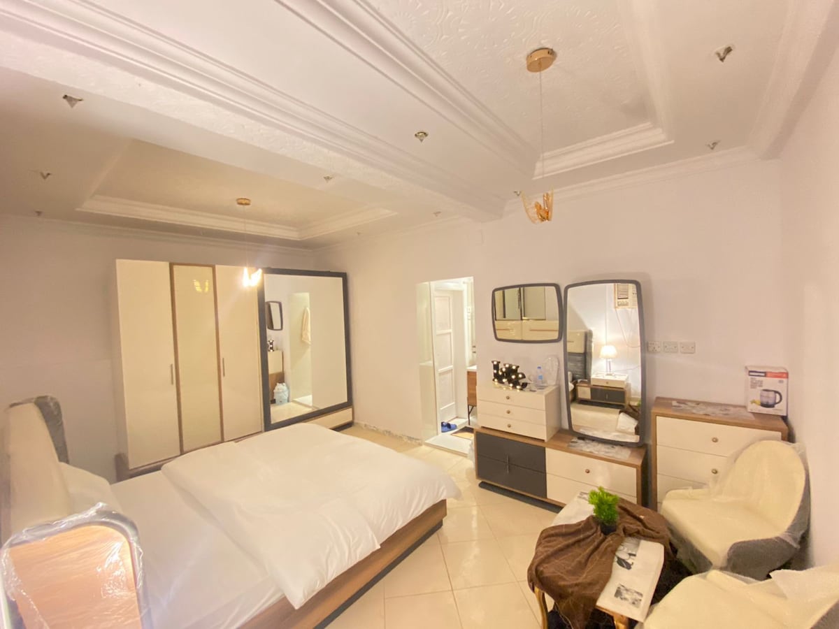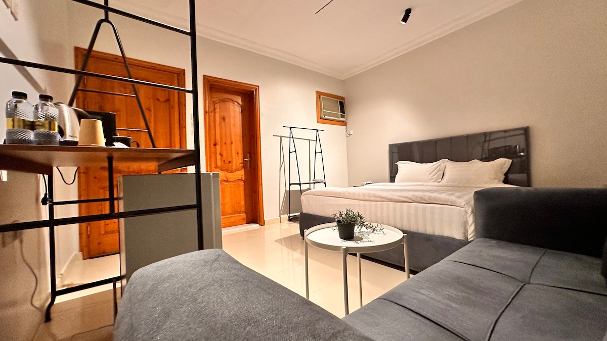 Enjoy your stay in our brand-new studio apartment, just 5 minutes by car from the Prophet’s Mosque. This cozy and modern space features a comfortable bedroom area with a sitting corner, designed for both relaxation and convenience. Ideally located near shops, restaurants, and essential services, it offers a perfect balance of comfort and easy access to everything you need in Madinah.