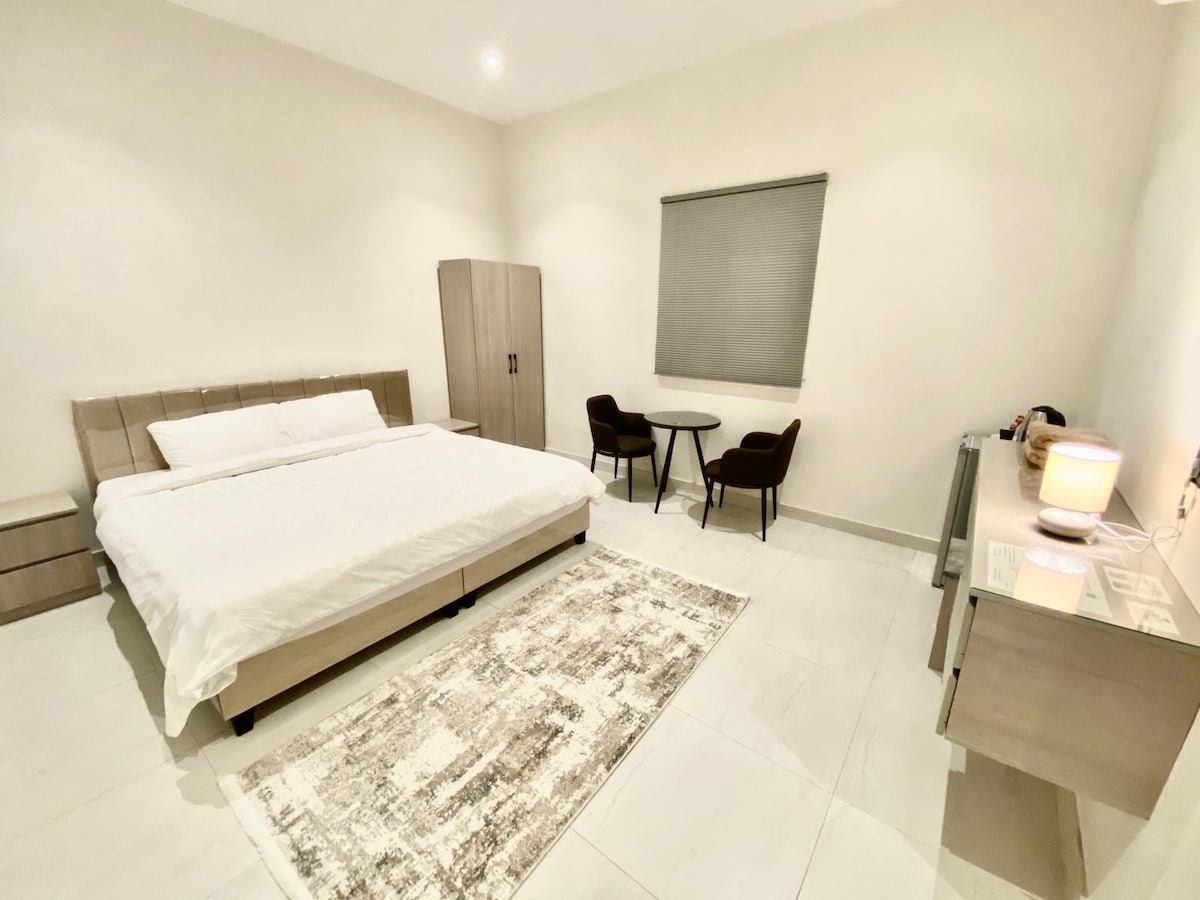 ✨ إقامة راقية داخل حدود الحرم المدني، على بُعد 20 دقيقة من المسجد النبوي، 10 دقائق من مسجد قباء، 5 دقائق مشياً إلى مسجد الحي، و20 دقيقة من ميقات ذو الحليفة. الجناح بتصميم عصري دافئ، يضم سرير كينغ فاخر ببياضات فندقية، حمّام خاص بدُش مطري، مكيف هواء، تلفاز ذكي، إنترنت سريع، ثلاجة، ميكروويف، ركن قهوة وشاي، طاولة طعام، مرآة كبيرة، إنارة ناعمة، خزائن، أرضيات سيراميك، مدخل خاص، وقفل رقمي. مثالي للأزواج، الزوار، المعتمرين ورجال الأعمال الباحثين عن الراحة، الخصوصية والأمان بالقرب من أهم المعالم الدينية.