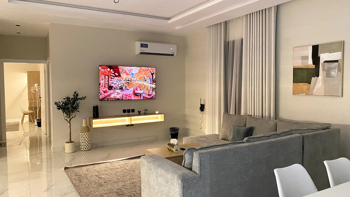 استمتع مع كامل العائلة في هذا المسكن الأنيق. قريب من مطار المدينة الدولي مدخل خاص مع موقف سيارة خاص لوحدتك. اثاث فاخر نظافة مستدامة خدمة على مدار الساعة