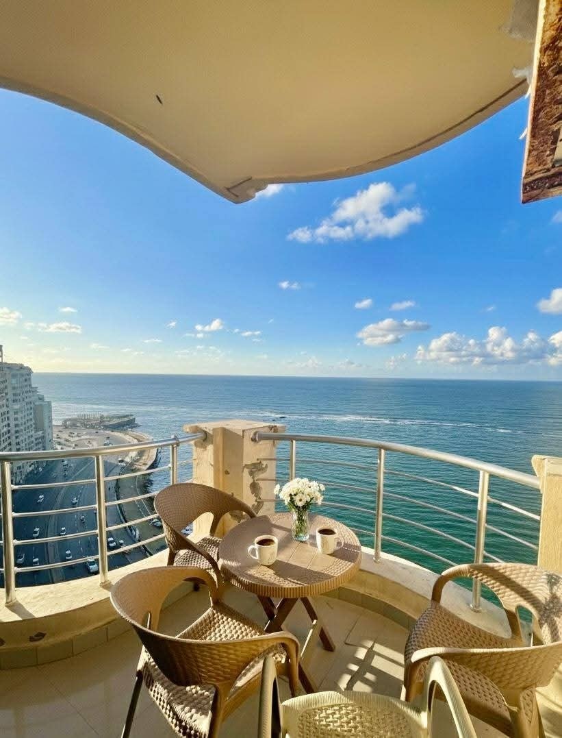 Your Luxurious 14th-Floor Mediterranean 🏖️!Getaway in Alexandria Imagine waking up to panoramic sea views from every corner of your apartment – even !from your bed Designed to maximize your sea experience, this spacious apartment is perfect for .families A room with three 120 cm beds.The other room has a 120 cm bed and a 170 cm beds "Dining, reception, living areas offer breathtaking sea views (West, North, East), perfect for enjoying cool breezes, ideal for soaking in warm sun."