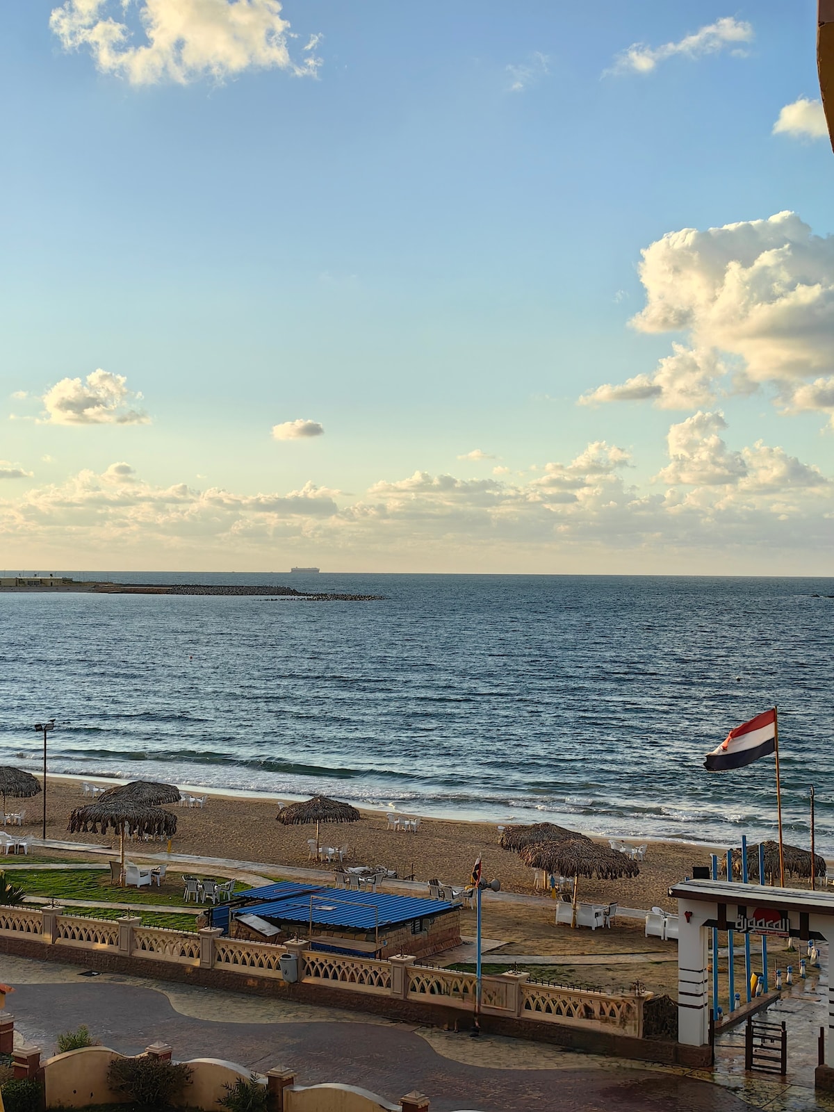 A step walk with side view of the sea and the proximity to the Famous Montaza Palace 🏡and many historical landmarks 🏰 .♥️♥️ Off > up to 40% for weeks , months✅😍 It’s beautifully designed ,furnished with ultra-luxurious finishes. It's walkable from cafes, and a hypermarket. It’s comes equipped with all the essentials like towels, bed linens, and blankets, all of which are clean, ready to use For the sake of privacy ,Instead of having a balcony in the apartment, it’s replaced with tinted glass