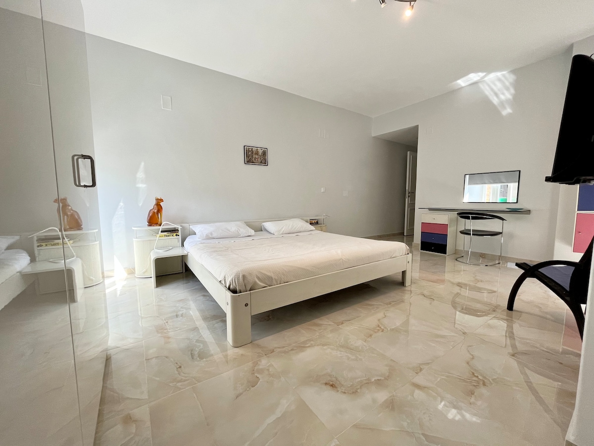 Bright, spacious and elegant apartment with rare garden view in Heliopolis, the heart of the giant metropolis of Cairo. This comfortable space is in a safe building perfect for families, tourists & anyone visiting for business; free WIFi & dedicated workspace. You will enjoy our high quality Egyptian cotton bed linens, comfortable mattresses, new bespoke kitchen, Egyptian art collection and safe neighbourhood. AC , Clothes iron, shampoo, Hair Dryer, Smart TV TikTok @aptseven insta @apt.seven7