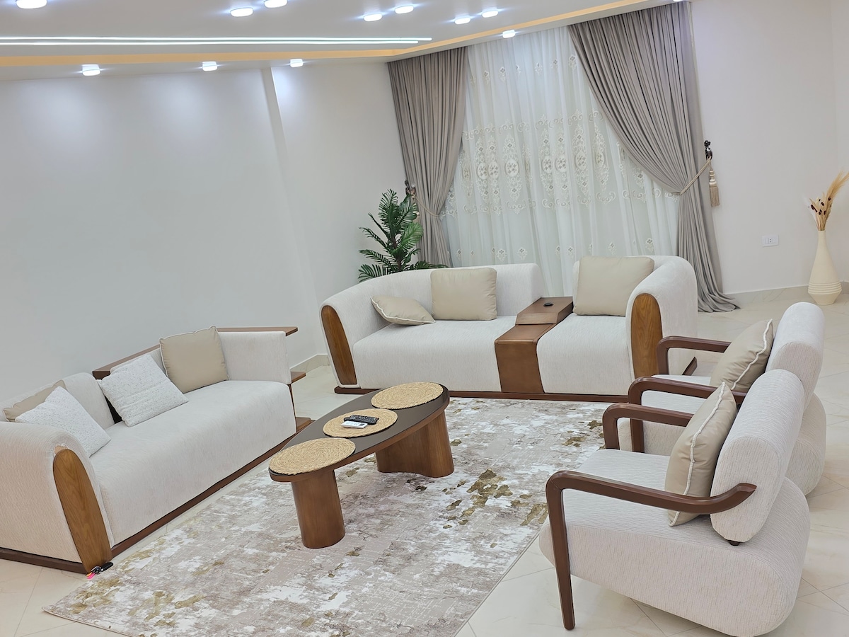 Experience the ultimate in modern comfort in our new 2-bedroom and 2-bathroom apartment suitable for 4 persons,Every inch of this stylish space is new and designed to make your stay unforgettable Our apartment is perfect for families or a business trip. You’ll find all the amenities you need, including a fully equipped kitchen, a comfortable living area Located in a prime compund, you’re just a short way from restaurants,shops in tagamoa and naser city Book now,,We can’t wait to host you!