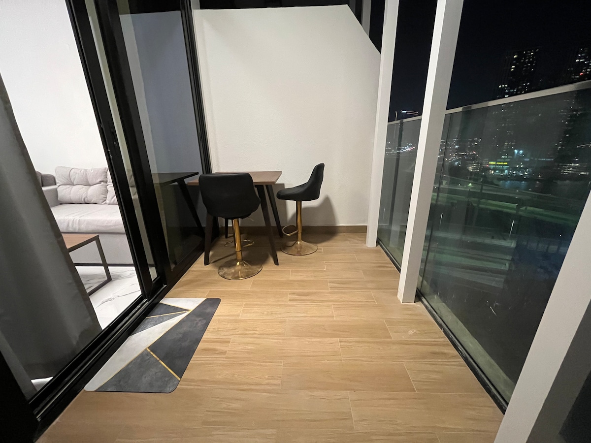 Welcome to my spacious studio. Inside sits a King sized bed and pull out couch, comfortably accomodating 4 people. Designated office area, equipt with comfy desk chair, and WiFi for meetings. Full bathroom and kitchen with everything needed for short or long term stays. Outside boasts a large balcony, with a cozy 3 person bench and 2 study glass tables to enjoy a morning breakfast or coffee with. 5 mins to the airport, 10 mins to Yas island, 25 mins to downtown Abu dhabi, and 50 mins to Dubai.