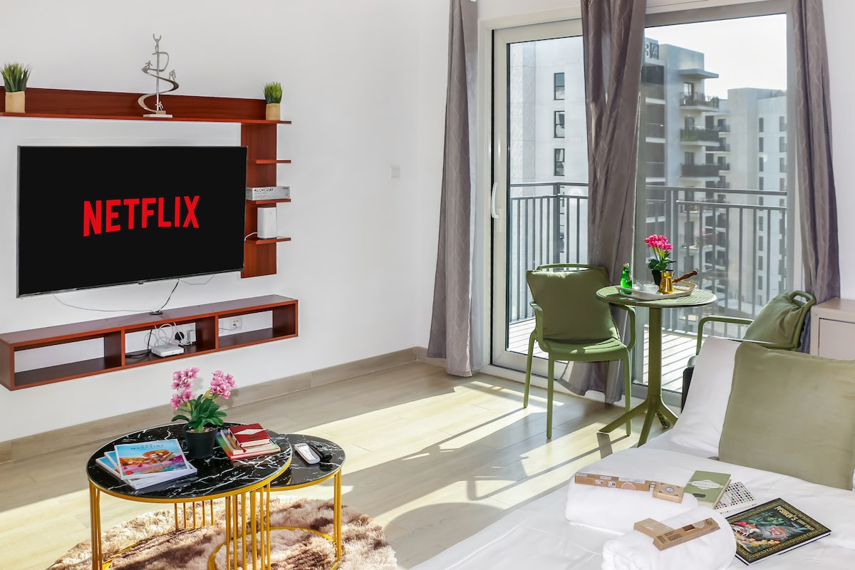 A spacious studio with an amazing view of skyscrapers of reem island and the LOUVRE museum CARREFOUR supermarket downstairs (G floor) and a taxi area in front of carrefour to go to any place in Abu Dhabi all the day 24/7 free access to the GYM (M floor) and 5 swimming pools and jacuzzi (3rd floor) BIG screen and speed WiFi Kitchen (air fryer/cooker/microwave/fridge/silverware) 4mins to galleria mall 5mins to AbuDhabi mall & downtown 30mins to grand mosque & airport Make yourself home! 😊