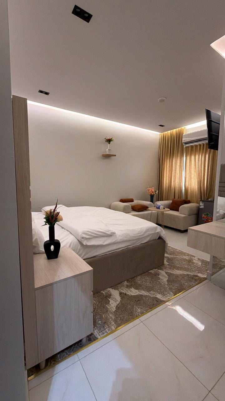 مرحبًا بك في "هَمْزة"، شقة فندقية أنيقة بطابع عسيري أصيل، تم تصميمها لتمنحك تجربة إقامة فريدة تمزج بين التراث والراحة الحديثة. تقع الشقة في موقع مميز وقريب من الحرم، وتوفر كل ما تحتاجه لإقامة هادئة ومريحة، سواء كنت في رحلة عمل أو زيارة دينية أو استجمام. 🛋 تفاصيل المسكن: غرفة نوم واسعة بديكور مستوحى من الفن العسيري، وسرير مريح يوفر نومًا هادئًا. شاشة ذكية 75 بوصة حمام فاخر يحتوي على كافة المستلزمات