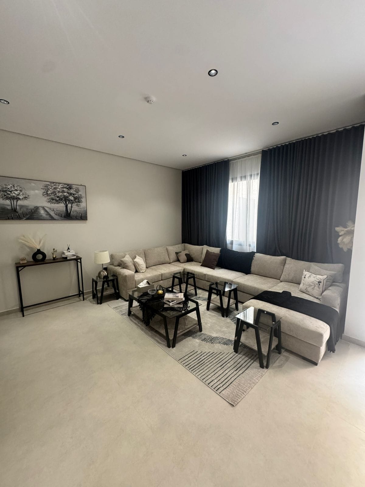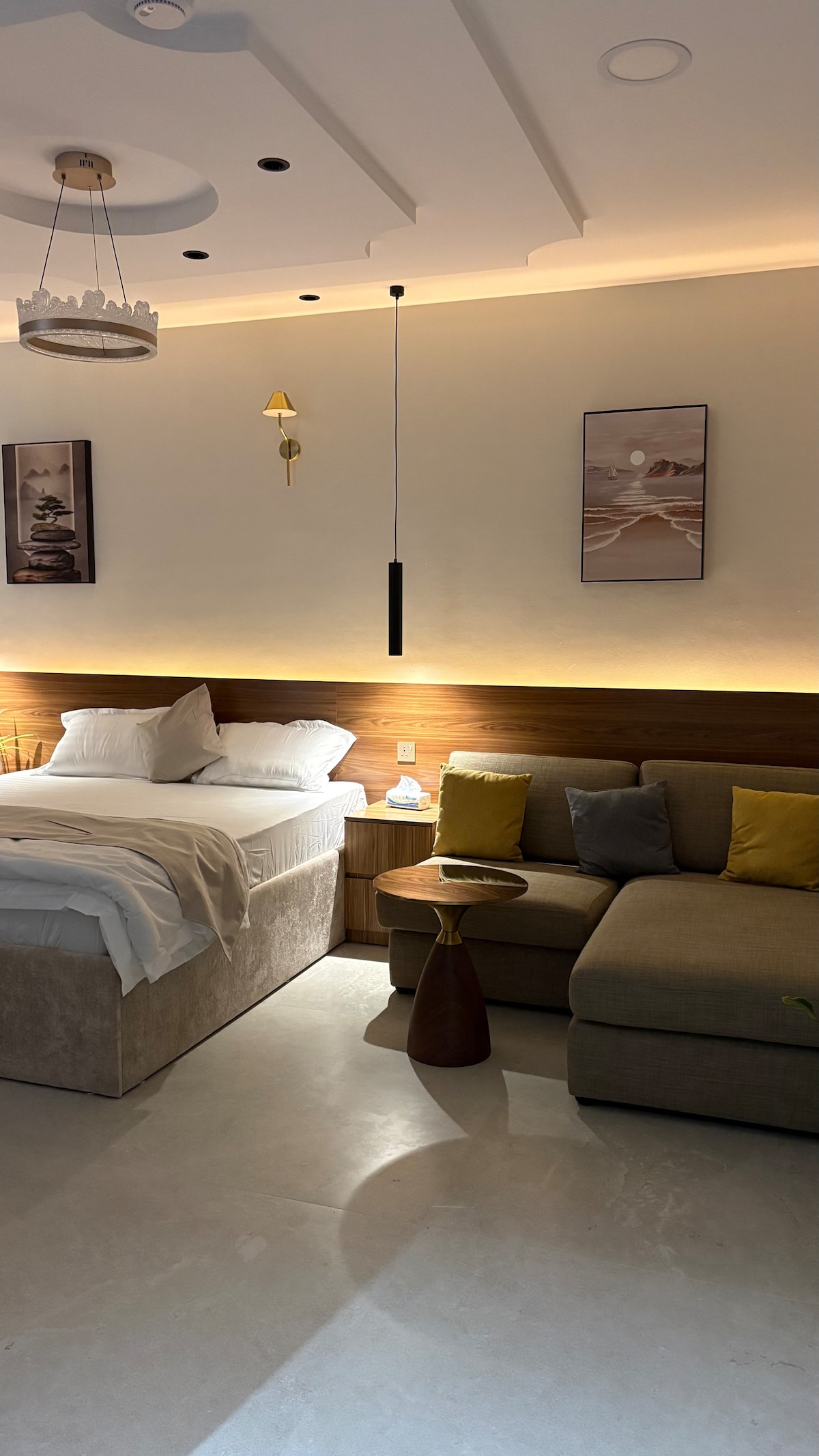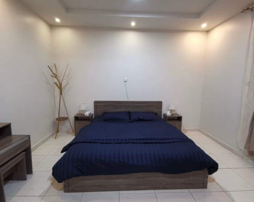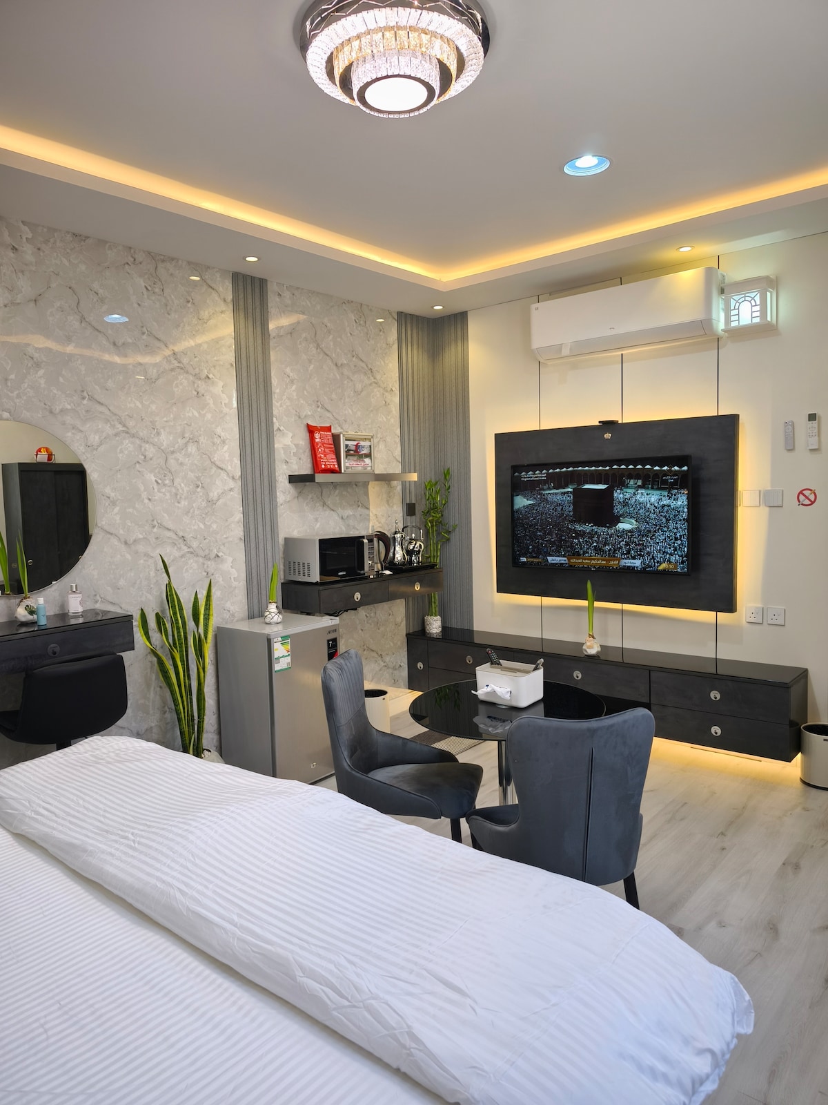 شقة هادئة وأنيقة بدخول ذاتي.. تتكون من صالة جميلة بذوق رفيع فيها شاشة ذكية 60 بوصه + WiFi يوجد مطبخ أنيق متكامل مجهز بكامل الأدوات لتلبية جميع احتياجاتك .. وغرفة نوم بسرير مزدوج مجهز بأجود المراتب .. ودورة مياه متكاملة الخدمات