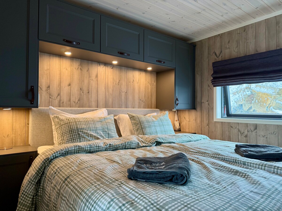 This is a modern, bright, and cozy cabin on one level, with 3 (4 bedrooms), 8 beds, and everything you need for a pleasant stay in the mountains. Two of the bedrooms have fold-down desks - perfect for workation. The modern fireplace will provide both comfort and warmth after a long day in the fresh mountain air. Electricity (ex. EV charging) included in the rent. The cabin is new, from 2022.