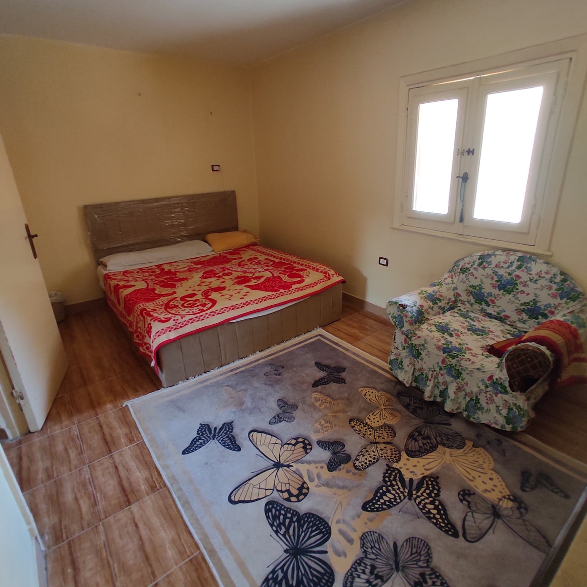 5 minutes from cairo international airport An 120 meter apartment with 2 bedrooms including 2 beds each (1 king bed and 3 medium beds) , 1 bathroom and kitchen with 2 fridge and dishwasher. Including elevator. Two TV with receiver, Washing Machine (clothes), 2 Vacuum cleaners, water heater, portable ladder, 2 fans and 2 landlines