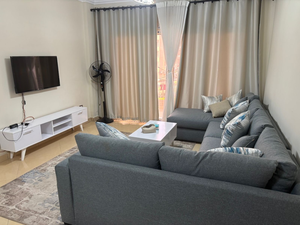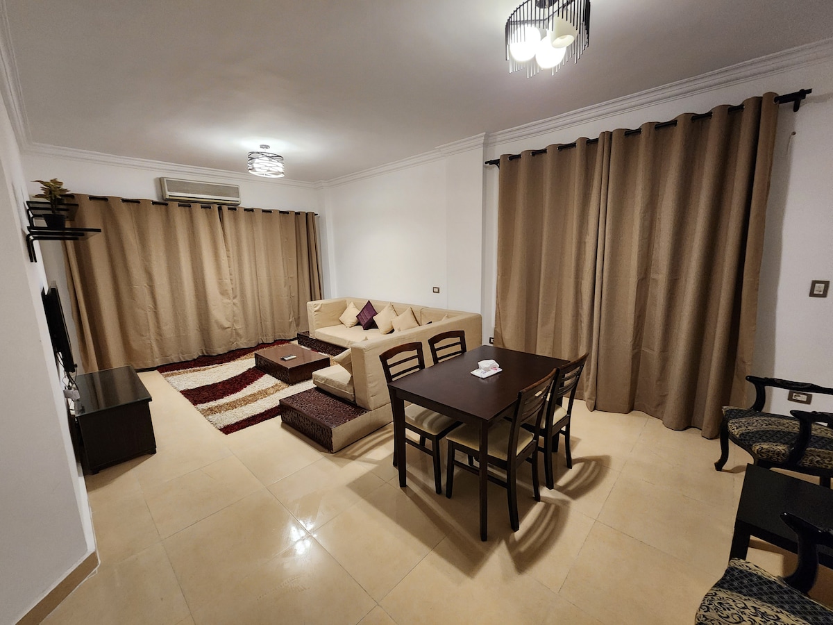 welcome to Your Home asay from home! Welcome to your ideal home in Cairo! Nestled just 7 minutes away from the airport, this exceptional flat offers unparalleled convenience for travelers and locals alike. Surrounding you are a plethora of 24/7 shops, markets, and pharmacies, ensuring that your daily needs are always within reach. Moreover, within a short 10-minute drive, you'll find yourself immersed in vibrant malls, filled with endless shopping opportunities.