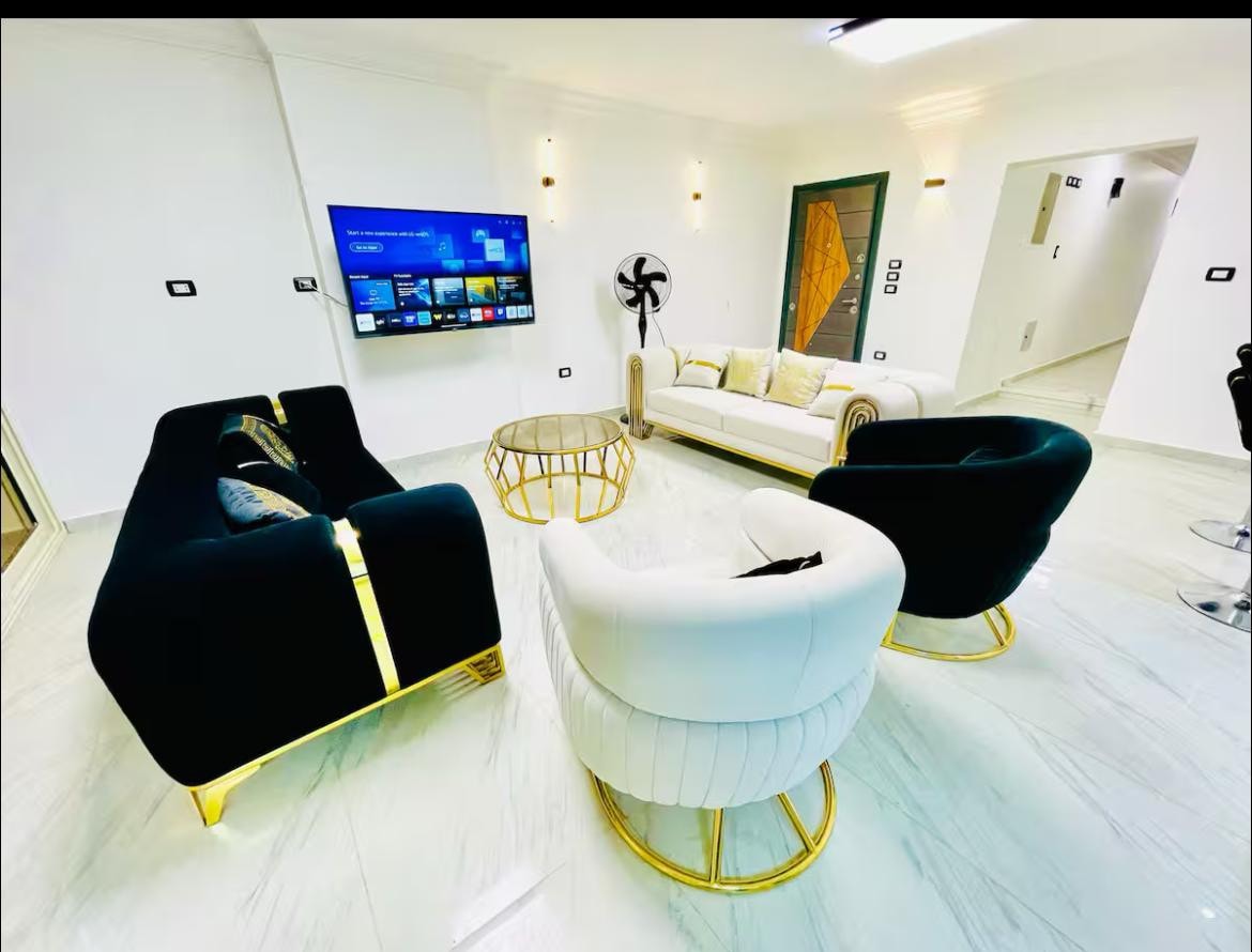 🏡 شقة فاخرة في العبور شقة واسعة ومفروشة بالكامل بأثاث حديث. تضم غرفتي نوم بسرائر فندقية مريحة، وصالون عصري مع تلفزيون ذكي وWi-Fi، ومطبخ مجهز بالكامل. 🛁 حمام فاخر مع صابون، شامبو، وشاور جيل مجاني لكل الضيوف. تقع في الطابق الثالث (لا يوجد مصعد)، بموقع مميز في منطقة ترفيهية، قرب كارفور العبور والمطار. ✅ الخدمات المميزة: • مكيفات هواء • تنظيف مجاني للإقامات الطويلة • إضاءة تلقائية عند انقطاع التيار • إمكانية توفير وسيلة نقل خاصة عند الطلب مثالية للعائلات والشباب، وأفضل من الفنادق الفاخرة ✨