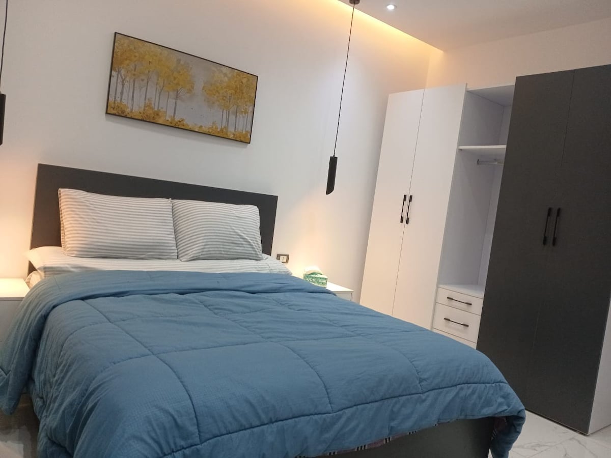 🌟 What This Place Offers • 🛏 Sleeps up to 4 guests (comfy bed + sofa bed) • ❄️ Fully air-conditioned with brand-new appliances • 💻 Optical fiber high-speed internet – perfect for work & streaming • 🍳 Fully equipped kitchen with stylish bar table • 📺 50” Smart TV in a cozy living area • 🚗 Only 4 min from Suez Road – easy access to the city • 🏡 Peaceful & friendly neighborhood