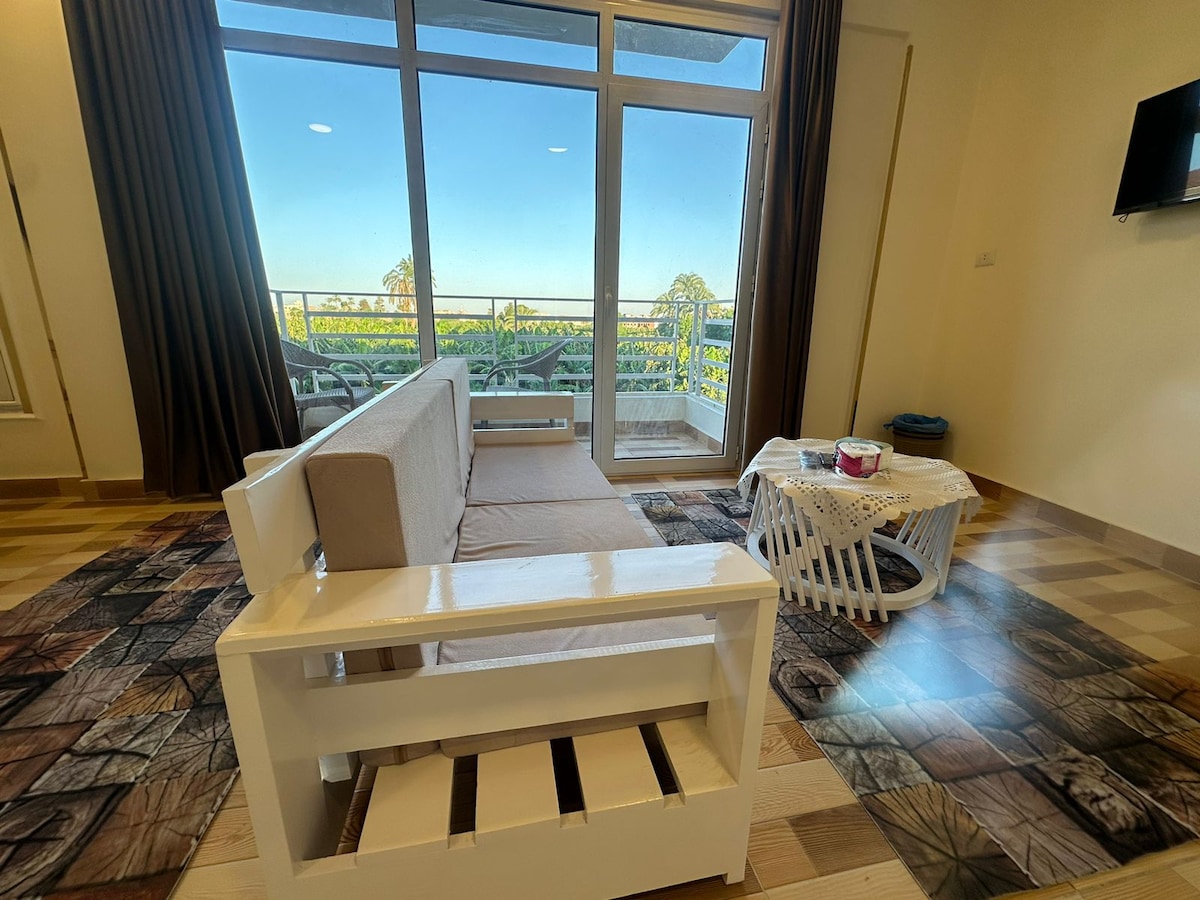 A one-bedroom unit,first floor, 1 min from Colossi of Memnon & Medinet Habu, this cozy first-floor space features a king bedroom, living room, kitchen, bathroom, and balcony with scenic views. Close to Deir el-Medina & Valley of the Queens (3 mins). Luxor Airport: 20 mins. On Memnon's main street near shops, restaurants, and cafés. Easy access to local transport, Indrive, and hot air balloon site nearby—perfect for a comfortable stay!