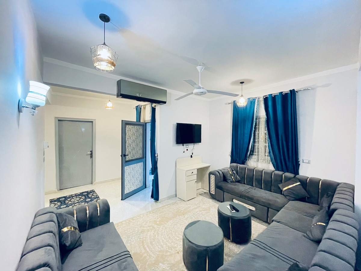 Spacious apartment suitable for families, individuals and friends. The apartment is located in a distinguished location next to the archaeological landmarks in Luxor, on the West Bank of the Nile.