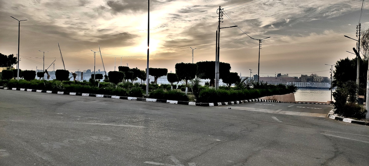 new quiet apartment with swimming pool and garden and perfect location 1 minute walking and u can reach everything like ATM . restaurants . pharmacy. supermarket and also car station to reach all temples 2minutes walking to reach the ferry to East ask us in chat about the 3 day program to visit all temples with private car and tour leader and hot air Ballon and trip in the nile by fluka and and other things
