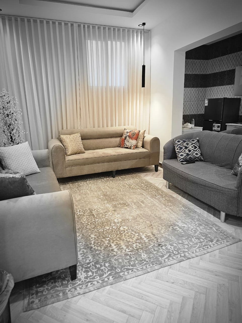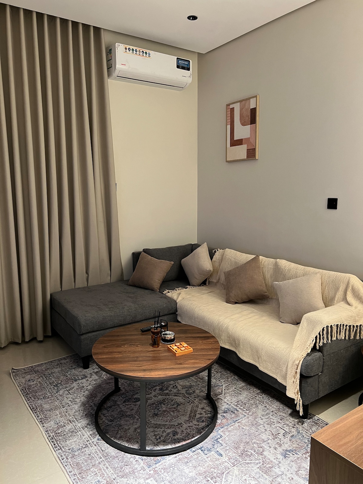 شقة بصالة أنيقة وغرفة نوم