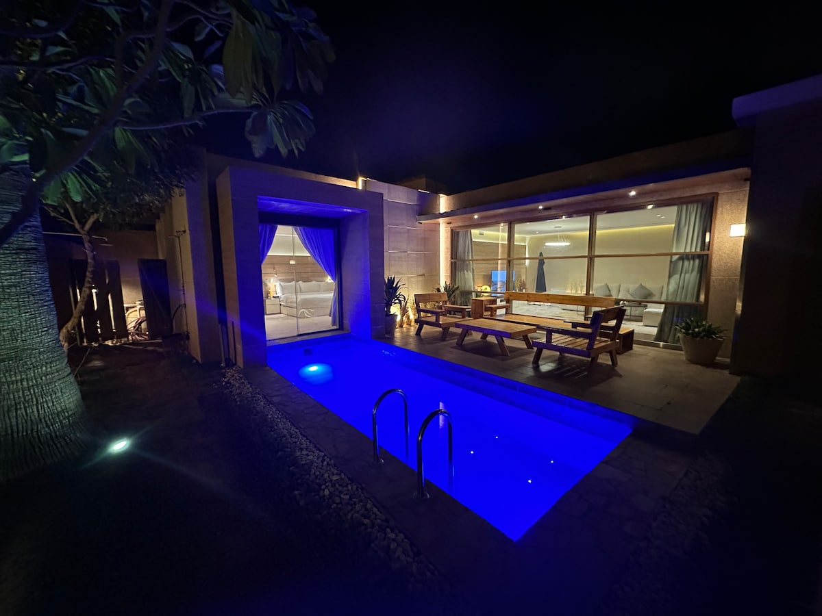 استمتع بالإقامة في فيلا بطابع فندقي هادئ ومريح، تتكوّن من طابقين وتضم مجلسين بخصوصية، و3 غرف نوم، وملحق بإطلالة، وجلسة خارجية أنيقة مطلة على المسبح. ✔️ مطبخ مجهز بالكامل ✔️ ركن قهوة مميز (آلة كبسولات + فلتر) ✔️ مثالية الباحثين عن الاستجمام والبعد عن الضوضاء ملاحظة:عمق المسبح متر ونصف ملاحظة مهمة: الضيوف مسؤولون عن متعلقاتهم الشخصية، والمضيف غير مسؤول عن أي فقد أو تلف