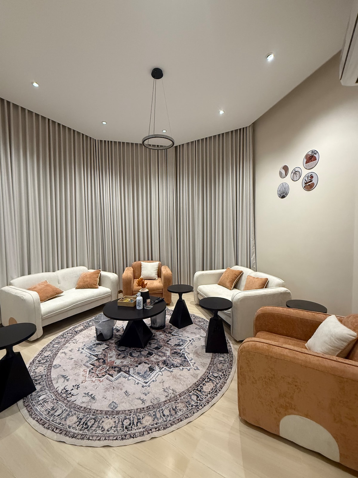 ستكون المجموعة بأكملها مرتاحة في هذا المسكن الفسيح والفريد. حيث يتميز المسكن بالخصوصية والأمان العالي المسكن مجهز من أجلك صالة ذات مساحة كبيرة مجهزة بشاشة تلفاز كبيرة 🎥 أريكة مريحة 🛋️ و أدوات وأجهزة الطبخ والتوابل 🧑🍳 وجهاز كي و تنظيف الملابس ونحن نسعد بطلباتكم الاضافية 🤍