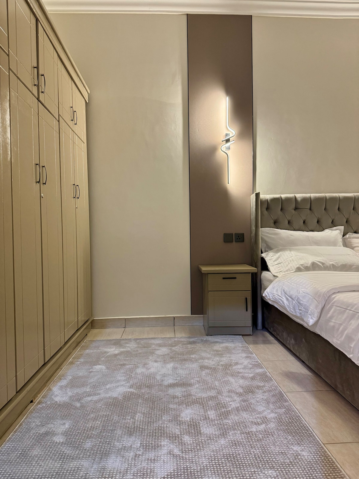 شقة سكنية مؤثثة بمساحة مريحة بالدور الاول، مدخل مستقل ، وتحتوي على مجلس يتسع لثمانية اشخاص ، تلفاز بشاشة مسطحة ٦٥ بوصة ، اشتراك نتفلكس مع توفير انترنت وغرفة نوم بسرير ماستر ، خزانة ملابس واسعة، وطاولات جانبية وصالة جانبية صغيرة تتسع لشخصين ومطبخ مجهز بجميع الأجهزة الكهربائية الأساسية مثل الثلاجة، الميكروويف، الموقد الغاز ، بالإضافة إلى خزائن وأدوات طبخ ودورتين مياه مع مغاسل رخام تبعد عن مطار حائل الإقليمي 7 دقائق تقريباً وعن مركز تدريب الأمن العام 12 دقيقة