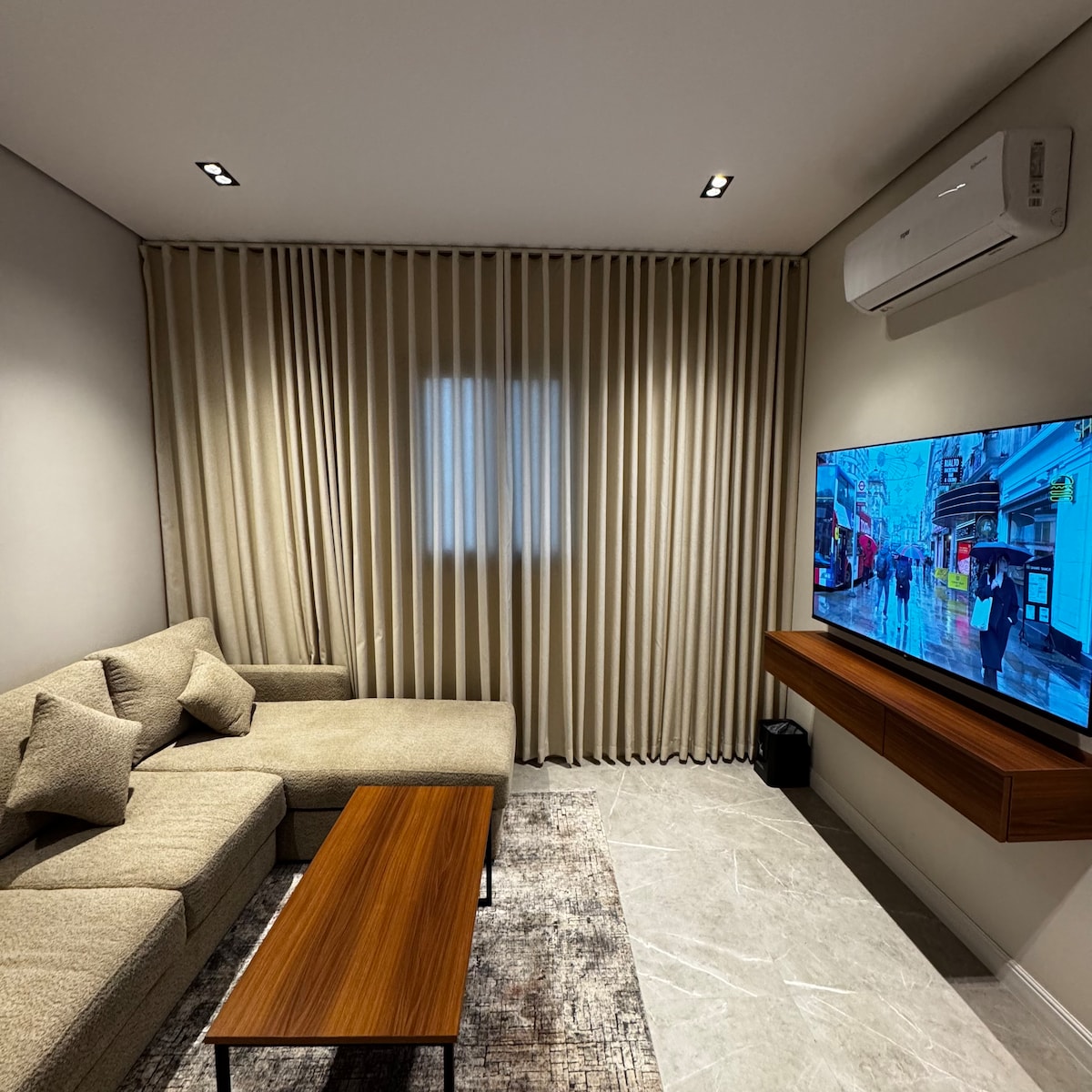 This unique place has a style all its own—designed to offer comfort, elegance, and a touch of luxury. Each room is thoughtfully furnished with chic décor and high-end finishes. Enjoy premium amenities including a Cinema VIPS experience, QLED flat-screen TVs, tea/coffee machines, hair dryers, plush towels, and a complimentary welcome pack. Whether you're here for a short getaway or a longer stay, you'll feel right at home with our modern comforts and personalized touches.