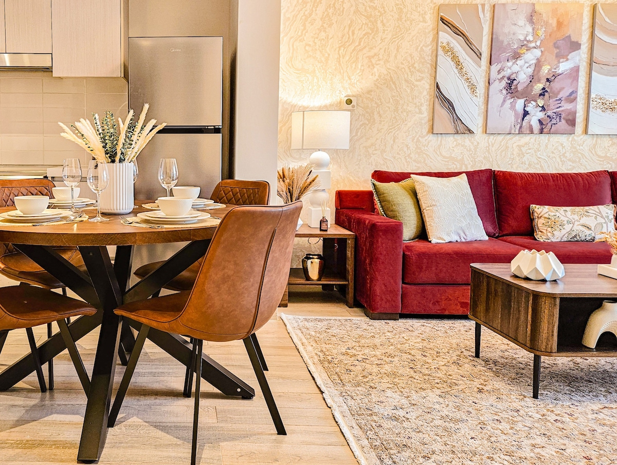 This elegant Yas Island home was made to make you feel at home. minutes from Ferrari World, Yas Mall, SeaWorld, and the Airport. Designed with sophistication, the space blends soft textures, curated décor, and a beautiful view over YAS. Sip your morning coffee, unwind at sunset view, and watch the fireworks from the comfort of your home. Every detail was chosen to make your stay effortless, from premium linens and high-speed Wi-Fi to the building’s pool, gym, and secure parking. Enjoy!