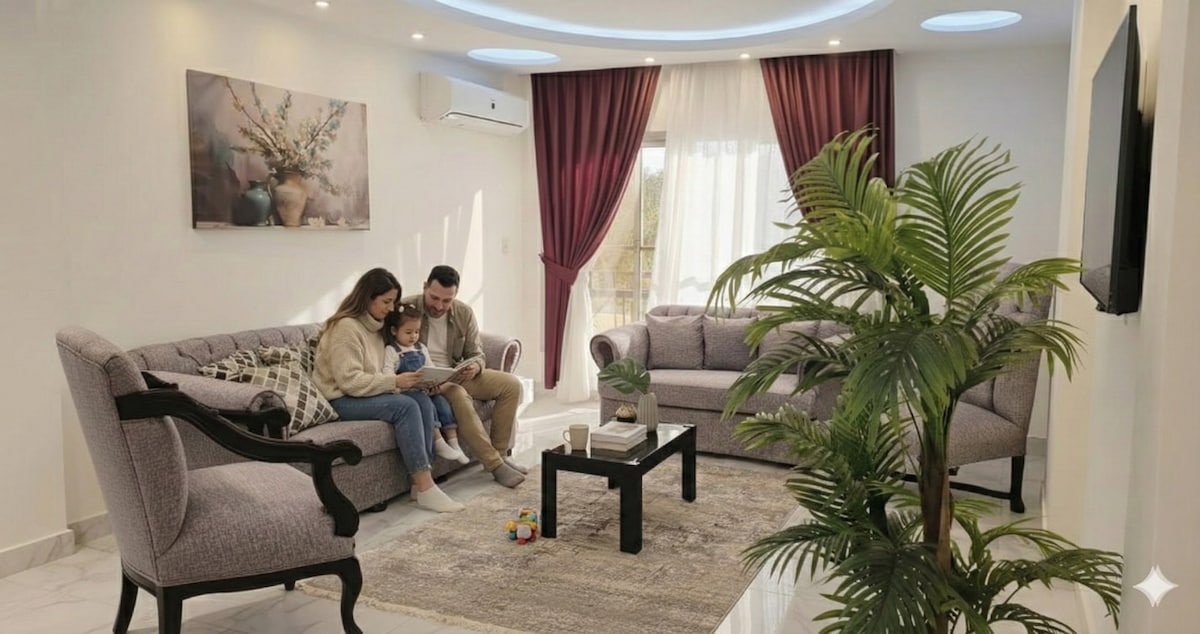 🌿 Welcome to Your Relaxing Retreat in Rehab City near Airport and Cairo Festival City If you’re here for a short getaway, a family trip, or a business stay, our place offers the perfect mix of comfort, convenience, and serenity. "Located in one of New Cairo’s most secure and family-friendly gated communities, you’ll enjoy peaceful streets, cafes, shopping malls, and parks all within walking distance. It’s the ideal base to explore the city while enjoying a peaceful home away from the bustle."