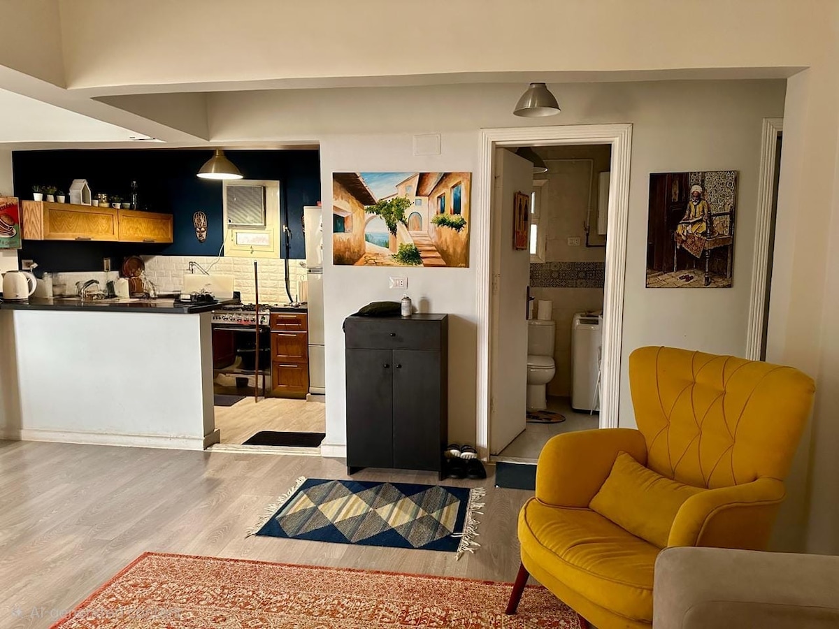 Discover our 1-bedroom gem in Golden Gates Compound—5 mins to Maadi, 10 mins to New Cairo and Nasr City, 15 mins from Cairo Airport and Heliopolis. Fully equipped American kitchen, a stylish mix of modern and boho vibes. Enjoy a garden view, 24/7 security, and on-site amenities like coffee shops, restaurants, Carrefour Hyper Market, and even a hospital. Unwind with a 65-inch smart TV, complete with streaming services, and stay connected with fast Wi-Fi. Your Cairo adventure begins here!