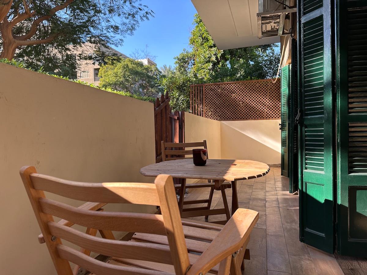 Enjoy a stylish experience at this centrally-located place. we do provide free luggage 🧳 assistance. 3 mins driving to Al Rehab & 1 min walking to Garden 8 Compound International Restaurants, Supermarket, Bars, Pharmacies are 1 min walking distance. Privacy is Guaranteed with Self Check in We're thrilled to welcome you to our unit on the 4th floor of our charming building. While there's no elevator, rest assured, our dedicated representative will be on hand to assist with your luggage.