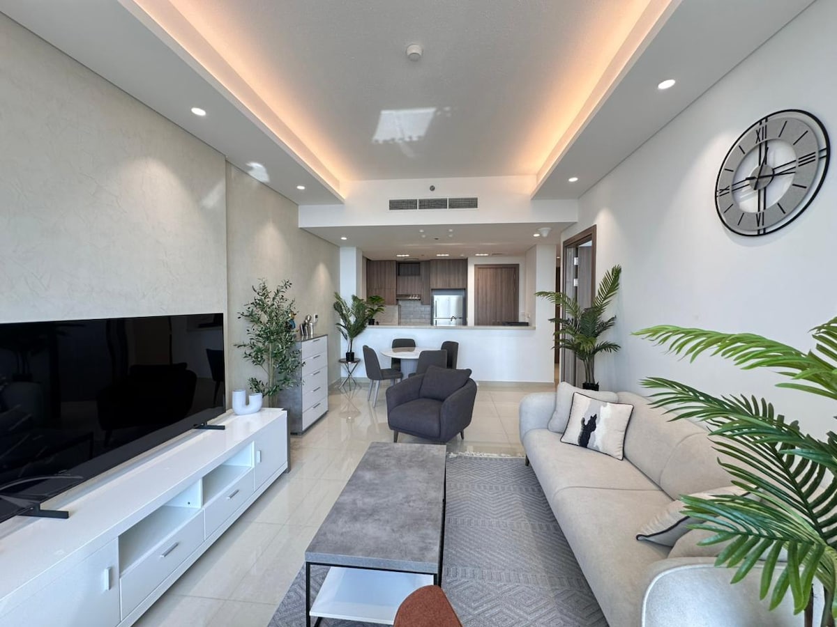 Bright and stylish coastal escape in Mina Al Arab! Perfect for couples, families and remote workers. What You’ll Love: • Sunny open living space with Smart TV + Netflix • Cozy queen bed + sofa bed to sleep 3–4 guests • Fully equipped kitchen (coffee machine included ☕) • Fast Wi-Fi — ideal for remote work • Quiet and family-friendly community • Self check-in for easy arrival Relax, work or explore — comfort and coastal vibes all in one place 🌊✨