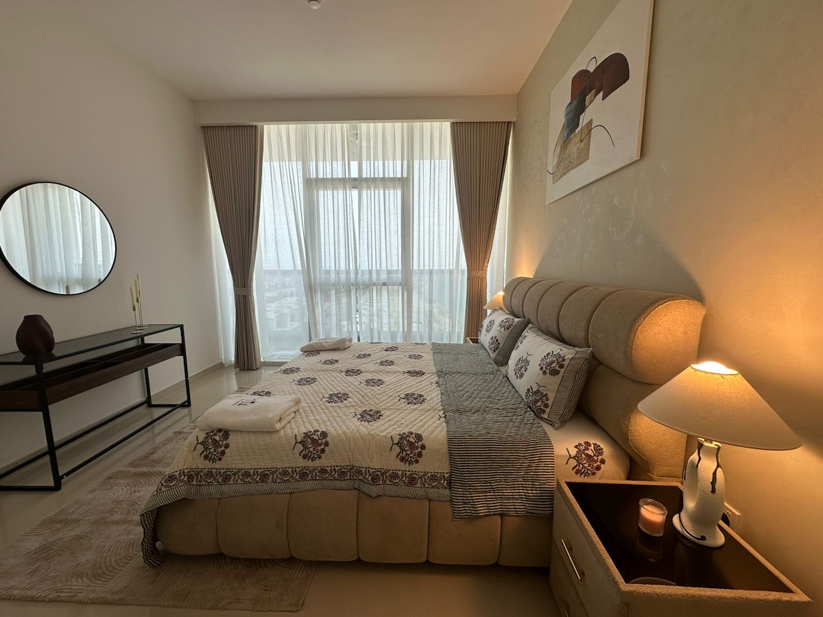 It is a studio room. With a beautiful and a calm sea view from the balcony. It is very easy to check in as you don't have to wait in the reception. Because it is Self-check IN. The room is given with a public GYM & Swimming pool. Before check IN the guest should provide a valid passport copy or emirates ID copy.