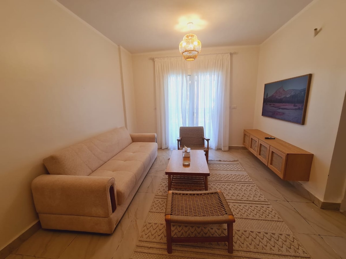 Experience ultimate relaxation at One-77, a premium stay in the heart of New Cairo, just one minute from the American University in Cairo (AUC).Designed for comfort and elegance. One-77 features luxurious furnishings, a private entrance for added exclusivity, and a refined atmosphere. Enjoy the convenience of professional housekeeping, with thorough cleaning after every checkout, as well as dry cleaning services to ensure a seamless and comfortable stay. Long stays and short stays are available