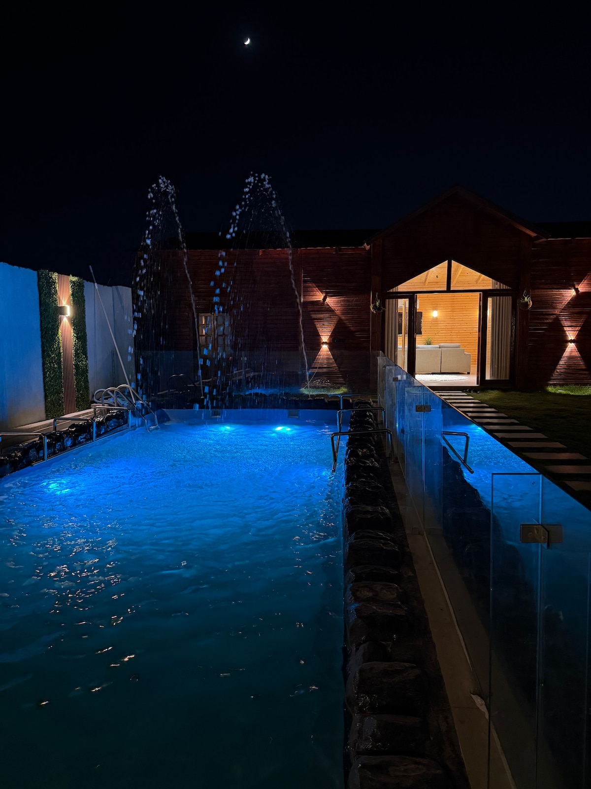كوخ خشبي عصري بمسبح خاص، على بعد دقائق من مطار الطائف — تجربة راحة وهدوء في مكان واحد