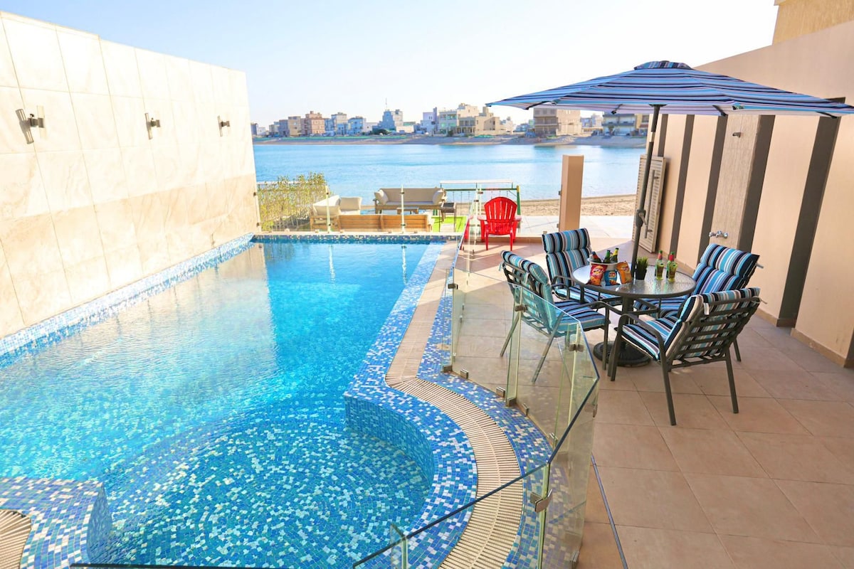 Luxurious Families-Only villa with a design inspired by the desert oasis. Well sized pool and a heavenly garden located at the most convenient spot in Khairan. Beach access available. 24 hours housekeeping. 7 Spacious room 4 Indoor living areas 2 Outdoor seating areas Well sized pool A garden with amenities Access to beach And much more!